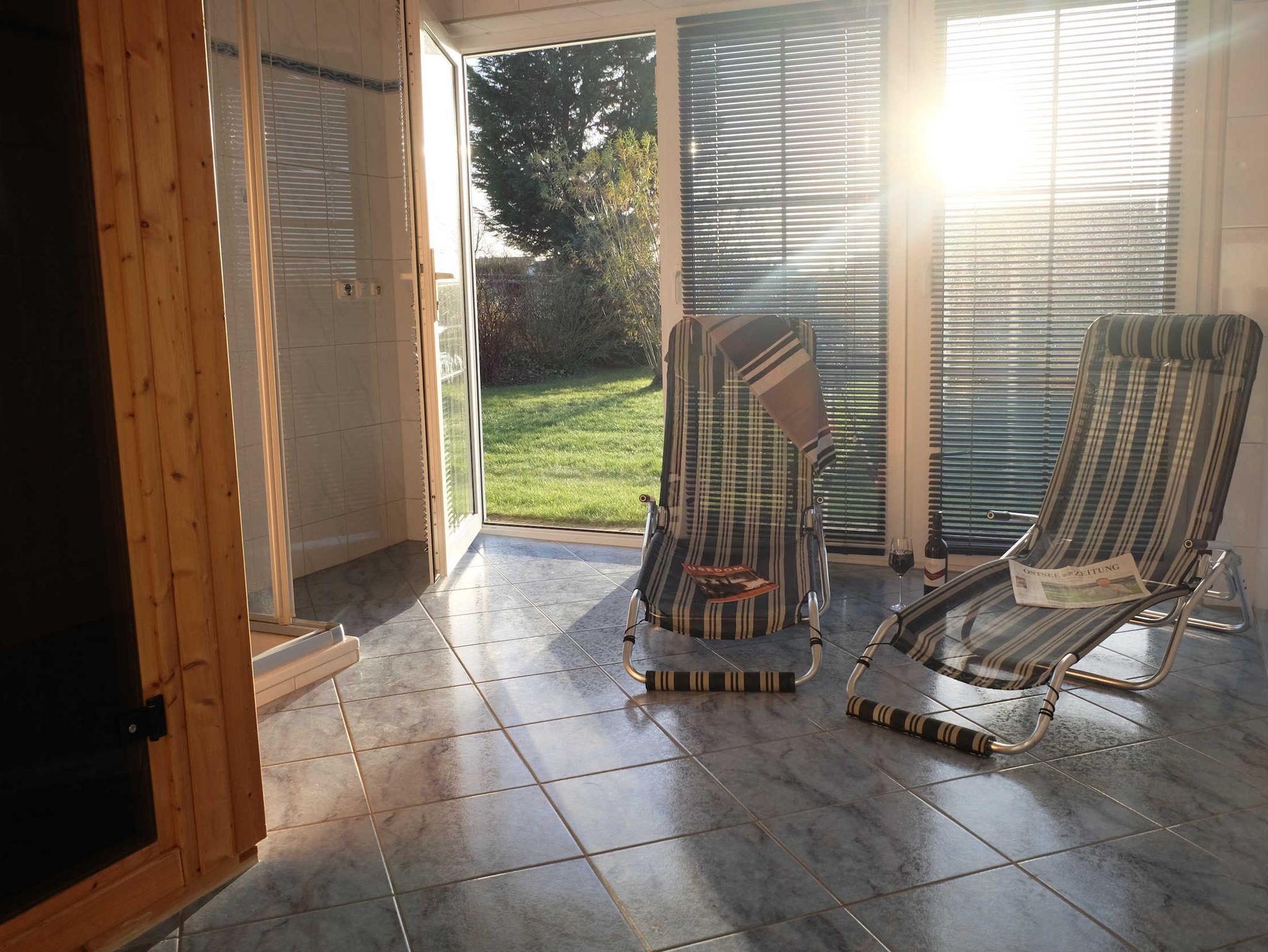 Ein besonderes Highlight ist die gemeinschaftliche Münz-Sauna im Garten, die von beiden Wohneinheiten genutzt werden kann. Nach einem Tag am Strand oder an kühleren Abenden sorgt sie für wohltuende Entspannung und rundet Ihren Urlaub auf angenehme Weise ab.