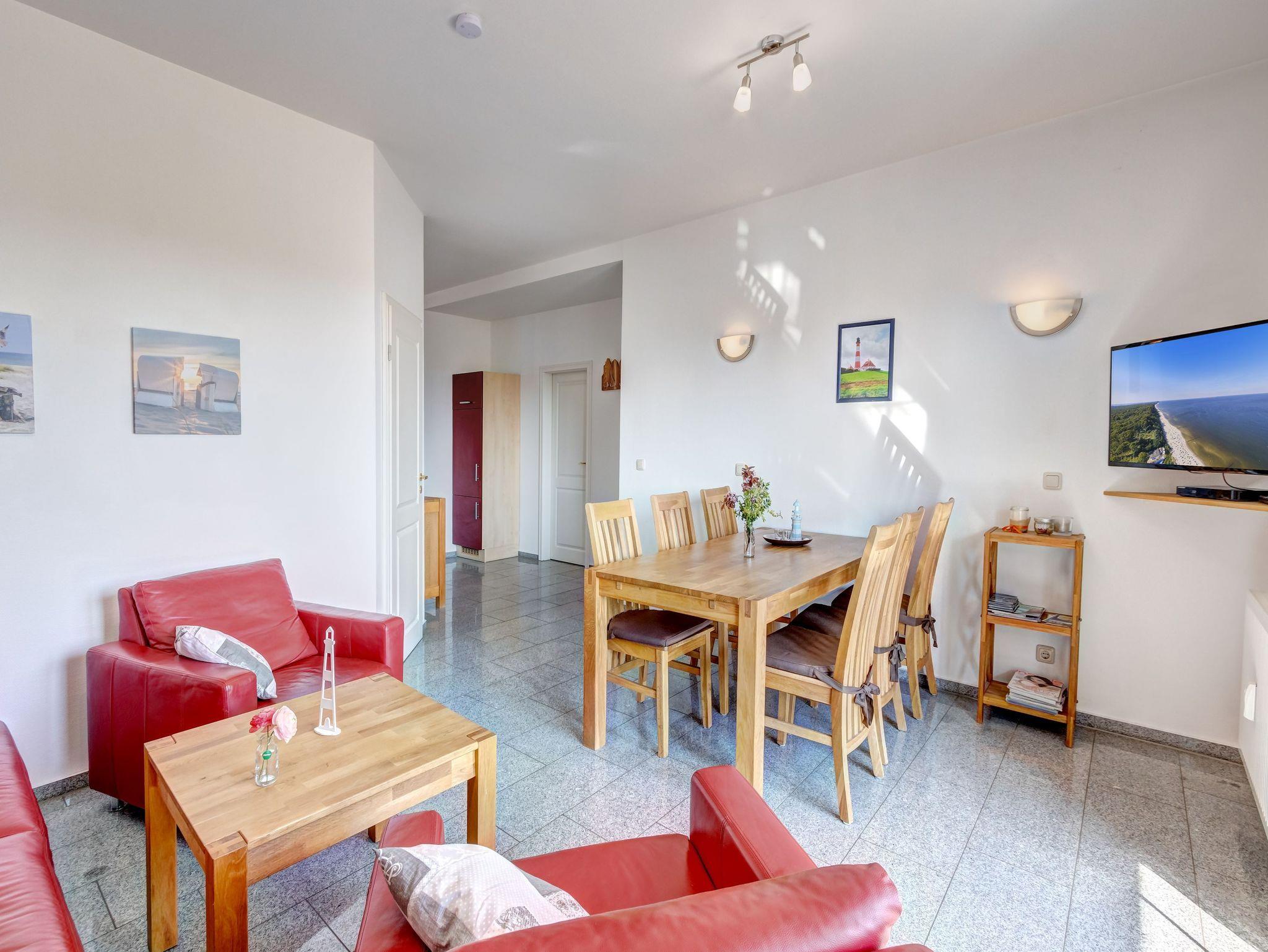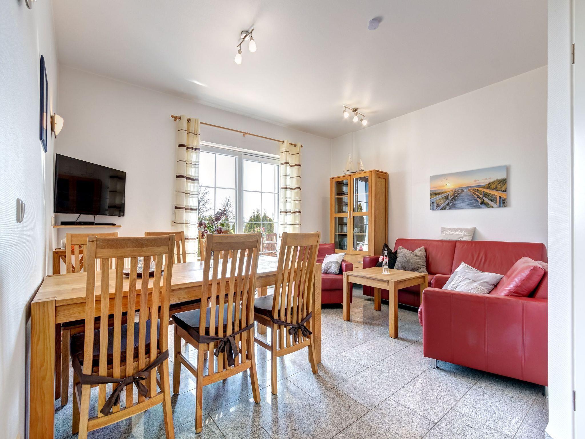 Die liebevoll eingerichtete Nichtraucher-Ferienwohnung erwartet Sie mit 2 Schlafzimmern und einem großen Wohnzimmer mit Esstisch und einer bequemen Leder-Sitzgarnitur.