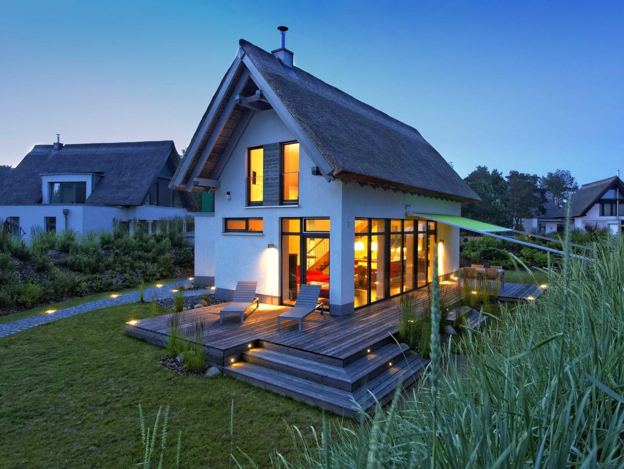 • Exklusives, 2012 erbautes, mit Schilfrohr gedecktes Strandhaus in der 5-Sterne-Haus-Anlage VAKON Ostseeland in Karlshagen nahe eines Naturschutzgebietes, ca. 4 Gehminuten vom Strand entfernt gelegen
