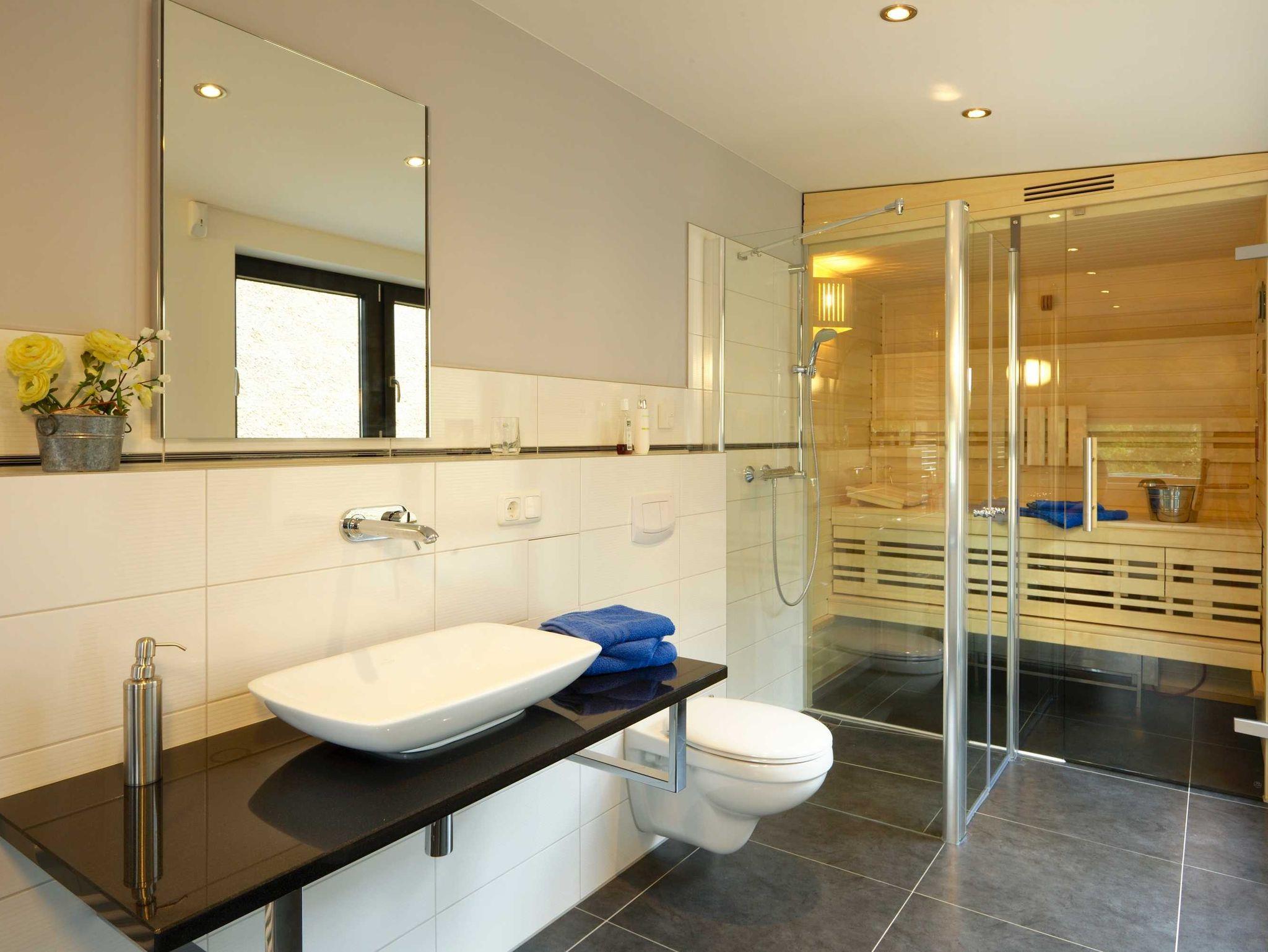 • Badezimmer mit Wanne, Dusche, WC und Sauna (die Nutzung ist inklusive)