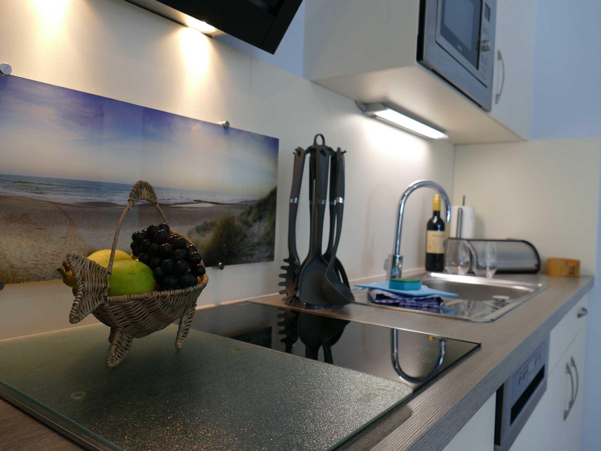 ? Küche mit Herd, Kühlschrank, Kaffeemaschine, Wasserkocher, Geschirr & Besteck u.v.m.