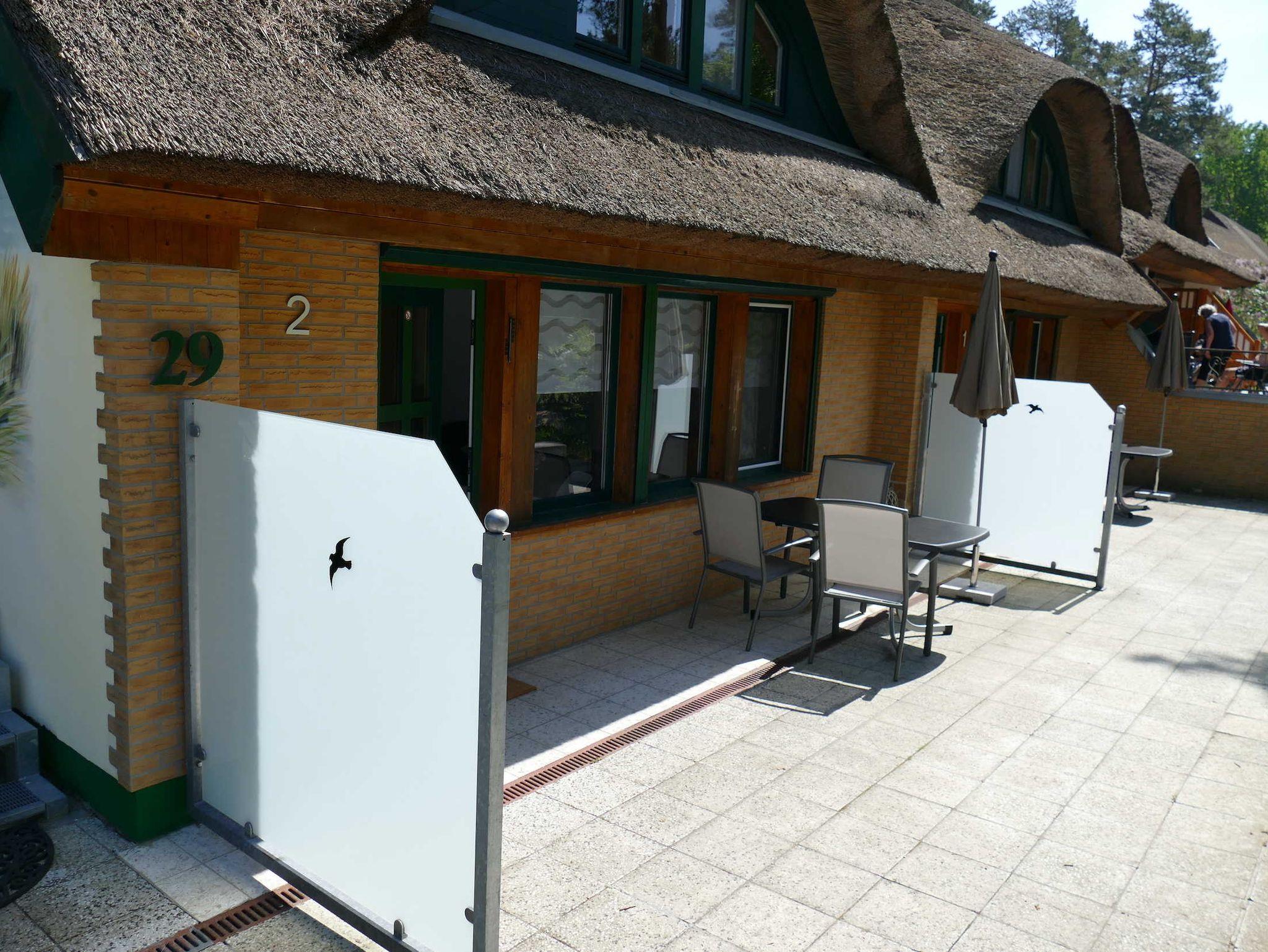 Zwei-Raum-Ferienwohnung vom TypZ1 mit Terrasse, im Reetdachhaus direkt hinter der Düne, im Ferienhaus Zeltpaltzstraße 29.