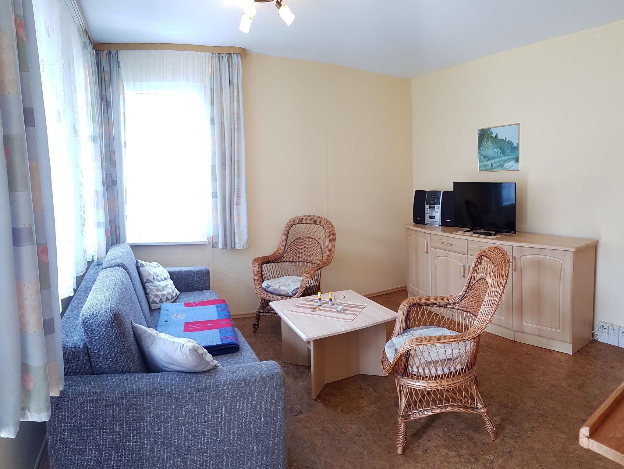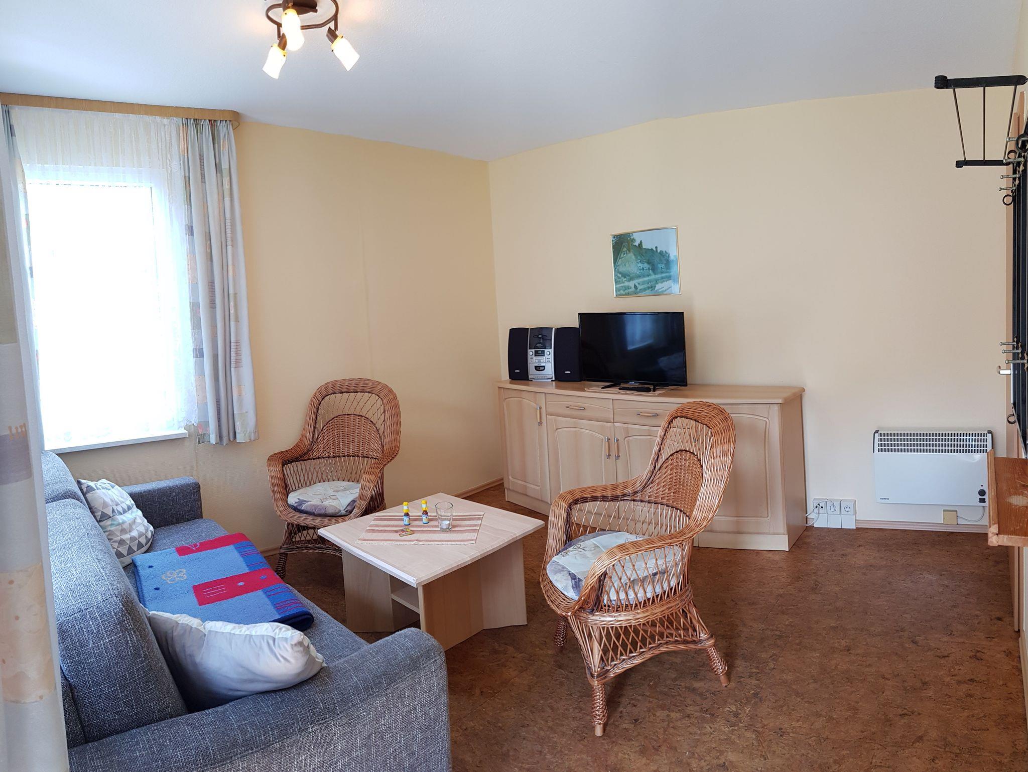 Sie wohnen in einem komplett ausgestattetem 35 m² großem Ferienhaus mit hellen Möbeln. Das Ferienhaus ist für 4 Personen ausgelegt und ausgestattet mit: 1 Wohnraum mit Radio, TV, 1 Schlafzimmer mit 2 Einzelbetten 2 Aufbettungen im Wohnraum 1 Küche Dusche/WC Möblierte Terrasse, Liegewiese Parkplatz am Haus