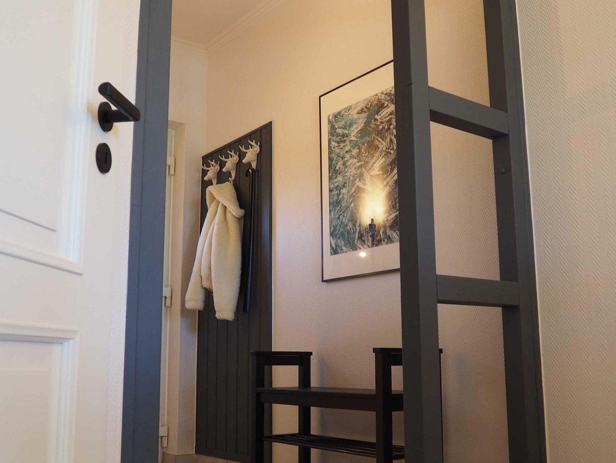 Die maritim und exklusiv ausgestattete Ferienwohnung (2 Zimmer / 37 qm) befindet sich in ruhiger Lage des im Juli 2003 fertig gestellten ersten Abschnitts der Ferienwohnanlage Hafenidyll direkt am Yachthafen von Karlshagen. Ein Wohnzimmer mit Esstisch, Schlafcouch und Couchtisch sowie ein separates Schlafzimmer (mit einem 1,80 m großen Boxspringbett) bieten ideal Platz für 2 Personen. Bis zu 2 weitere Personen können auf der im Wohnzimmer stehenden Schlafcouch übernachten. Ein klappbares Kinderbett und Hochstuhl können ohne Aufpreis genutzt werden. Im Wohnzimmer befindet sich eine komplett ausgestattete Küchenzeile inkl. Geschirrspüler, Mikrowelle mit Grill und Umluft, Kühlschrank mit Tiefkühlfach, Cerankochfeld mit 2 Kochstellen, Kaffeemaschine, Toaster und Wasserkocher. Kabel-TV, DVD-Player und eine Stereoanlage (Radio + CD-Player) stehen im Wohnzimmer zur Verfügung.