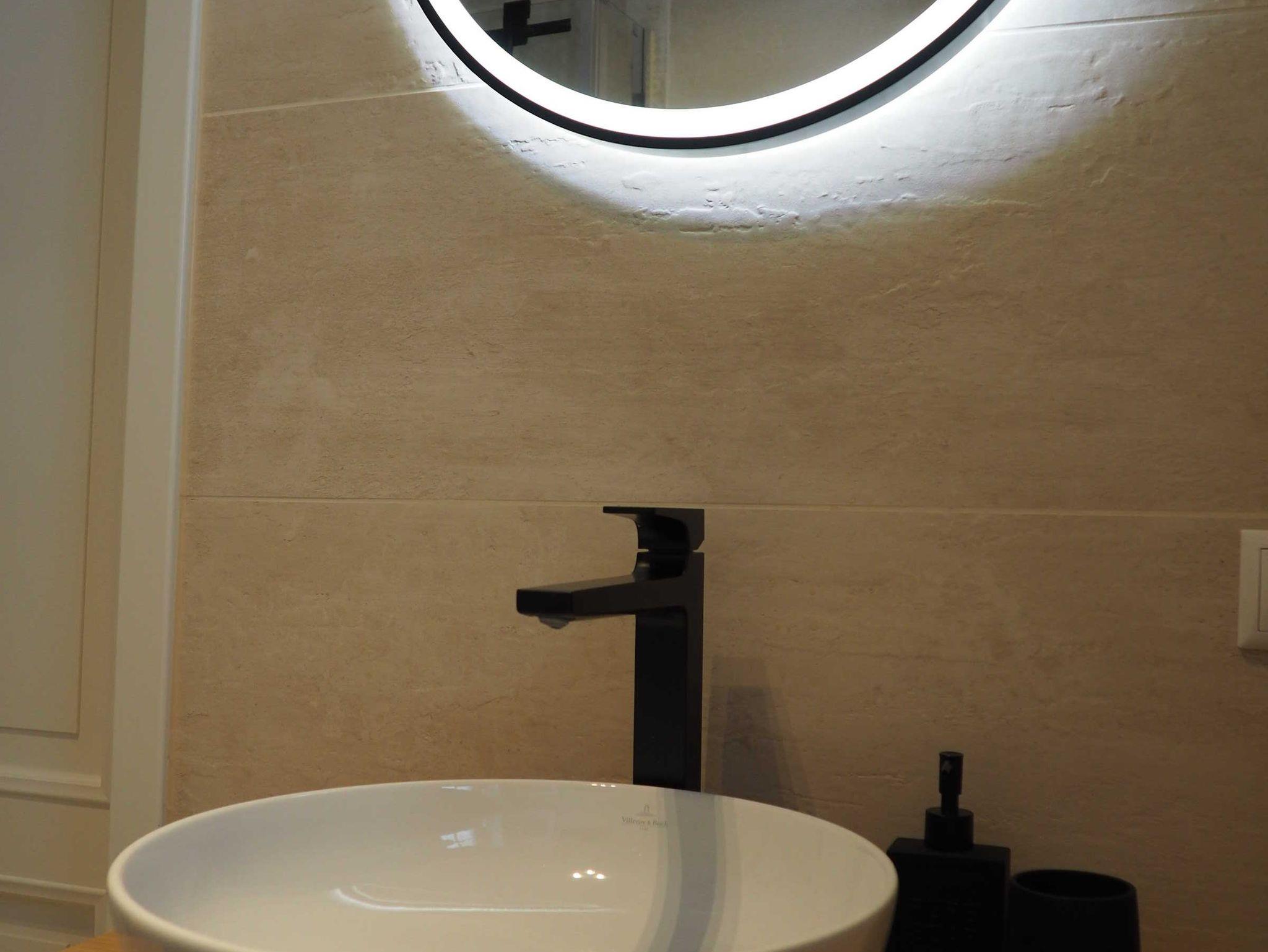 Das Bad ist mit einer Duschkabine, WC, einem großen Waschbecken sowie Fußbodenheizung ausgestattet. Die Böden sind in allen Zimmern vollständig gefliest.