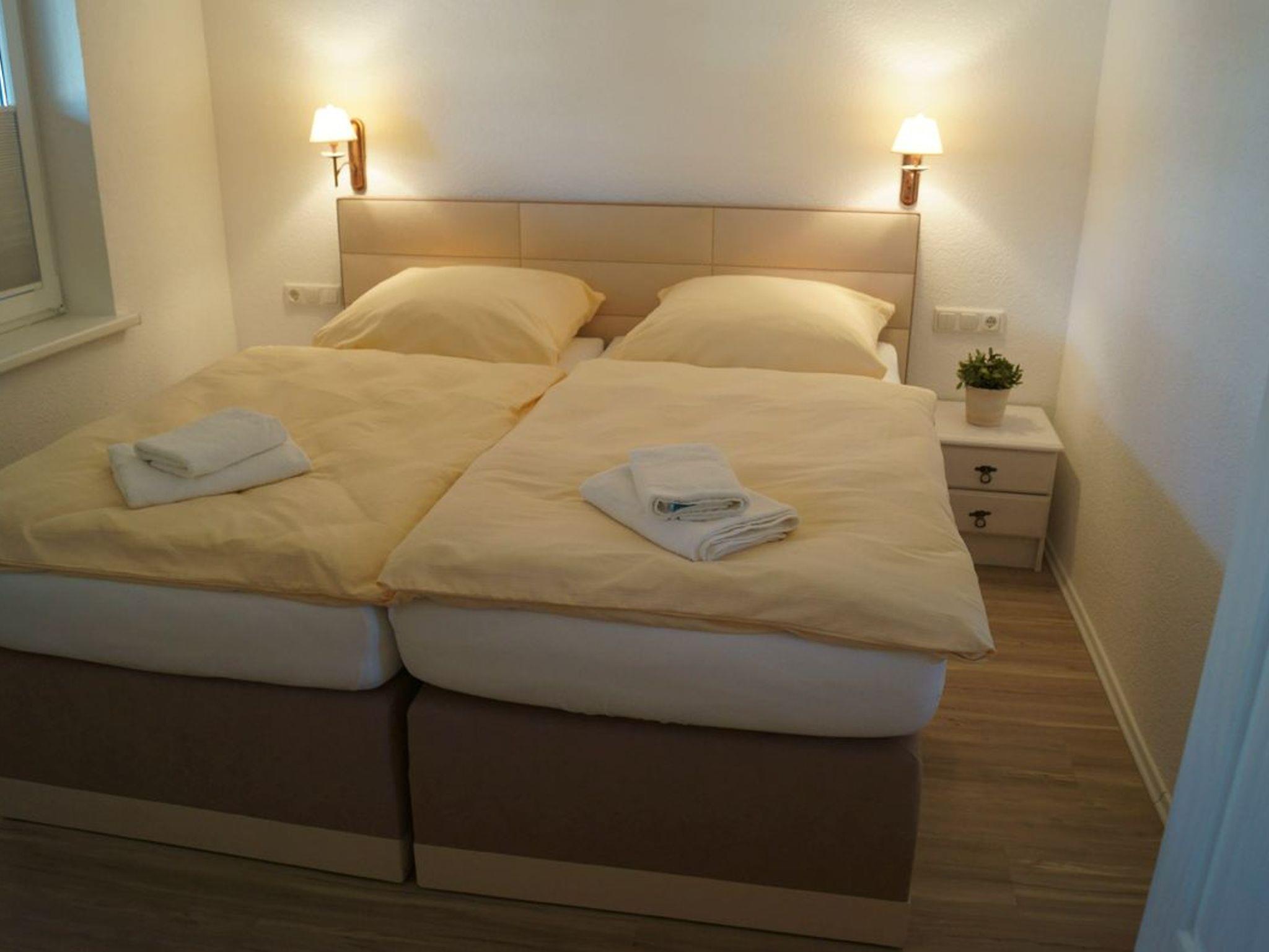 ? Zwei vollwertige Schlafzimmer, eines davon mit Boxspringbetten, Safe, ein Kinderbett, Betten sind bezogen