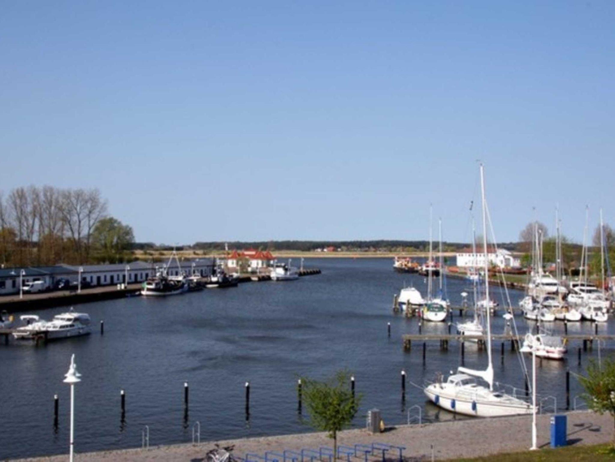 Im Hafen legen neben hochmodernen Yachten auch Traditionssegler, Ausflugsschiffe und die alten Fischerboote an. Man kann das maritime Flair des Hafens genießen und hat einen wunderschönen Blick über die Peenewiesen und den Peenestrom bis hin nach Wolgast.