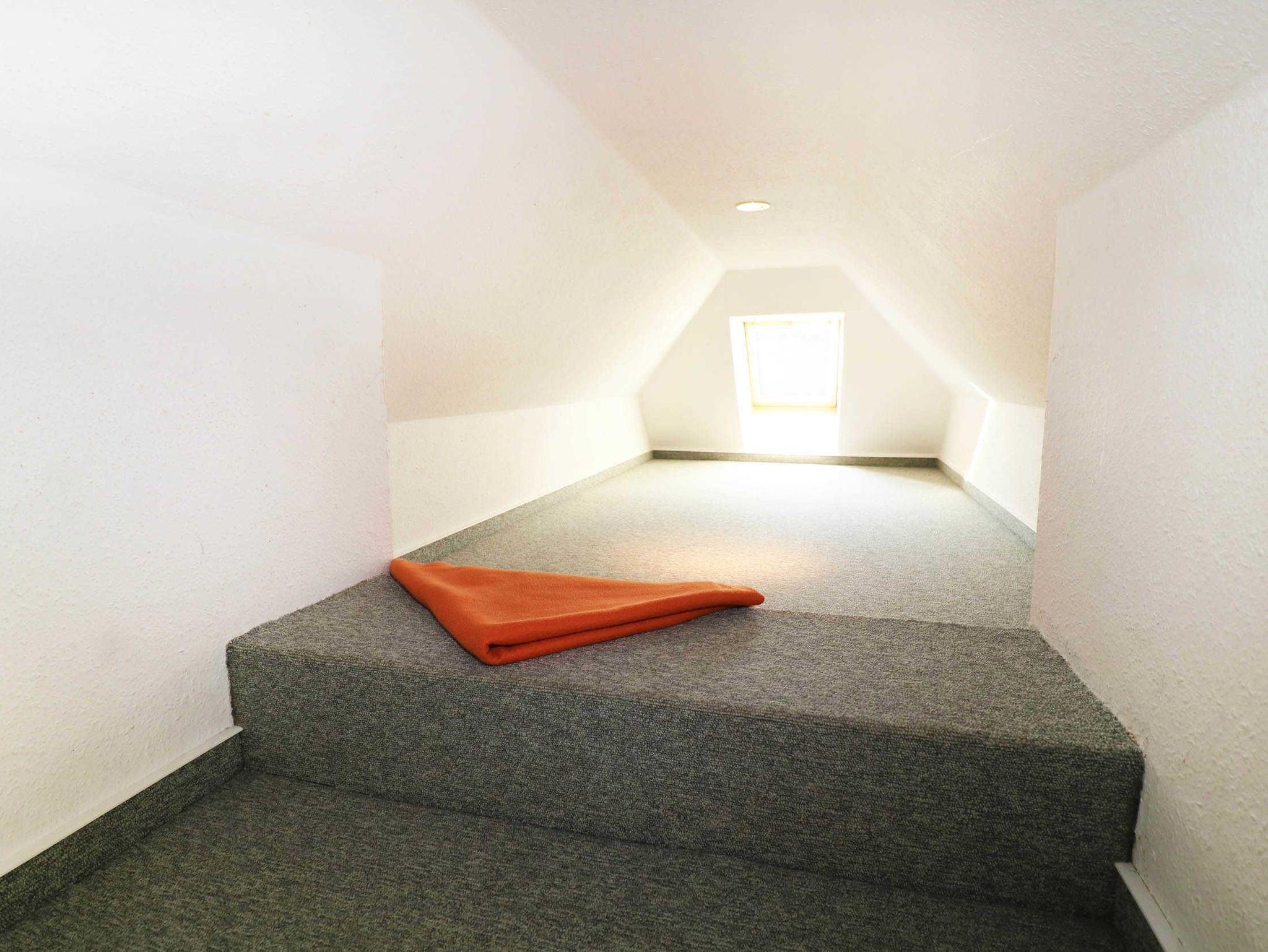 3-Raum-Maisonette-Wohnung mit 2 Schlafzimmern - 1 Schlafzimmer mit Doppelbett, 1 Schlafzimmer mit 2 Einzelbetten. Im Schlafzimmer ist Platz für mindestens 1 Baby, das noch im Babybett schläft.