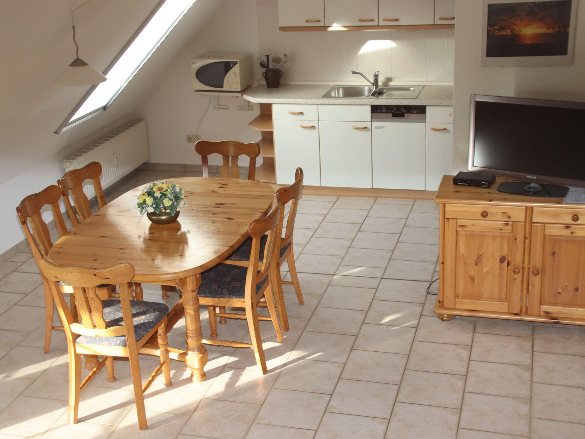 Diese Ferienwohnung befindet sich im Obergeschoß in dem ruhig gelegenen Objekt und bietet den Gästen reichlich Platz. Auf dem Balkon sind Sitzmöbel und Tische vorhanden. Eine rustikal Sitzgruppe lädt zum Verweilen und gemütlichem Beisammensein auf dem großzügigen Grundstückein ein. Ein Grillplatz befindet sich auf dem Grundstück.