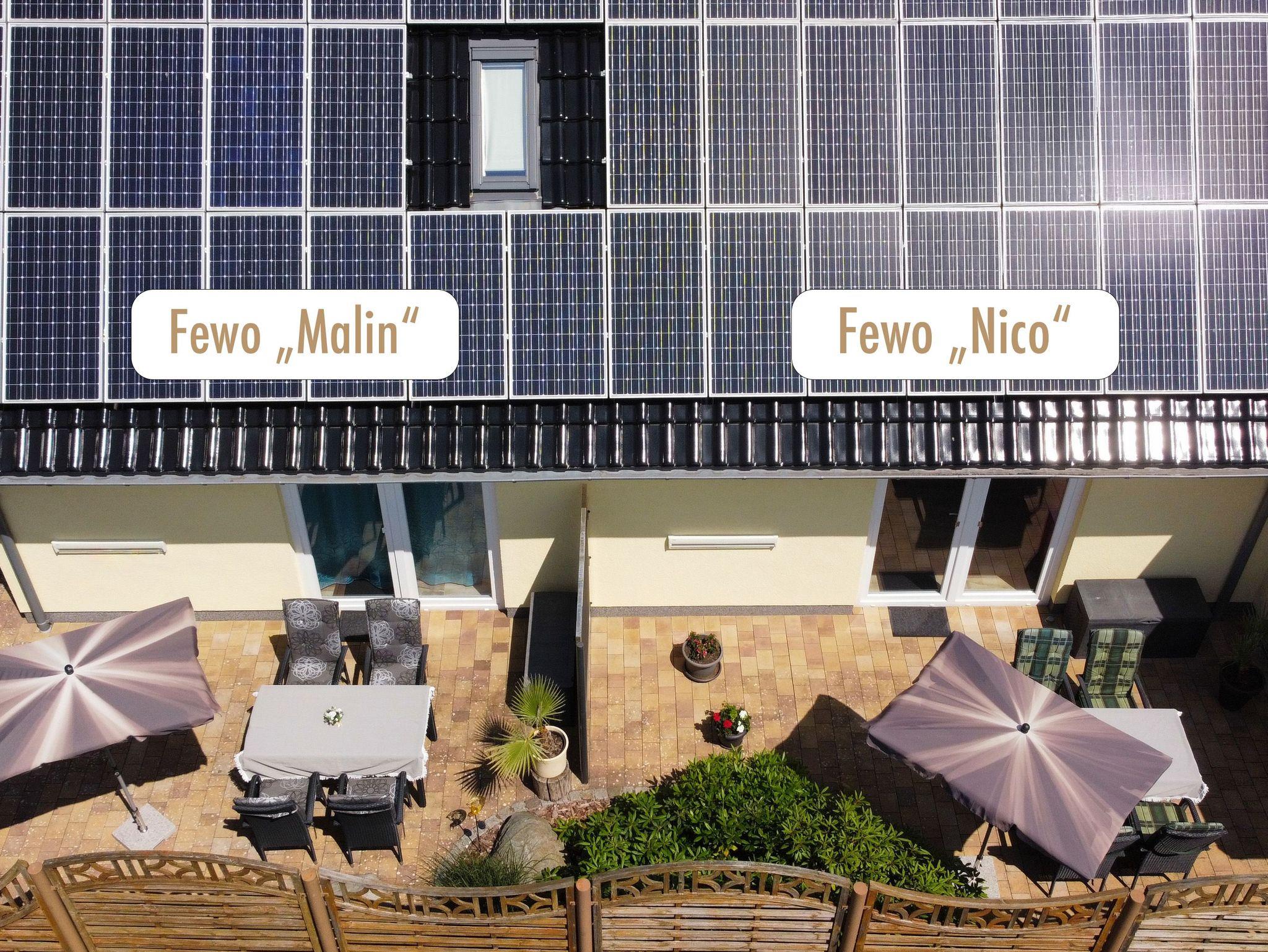 Das Doppelhaus (Erd- und Obergeschoss) befindet sich auf einem Eigenheimgrundstück in zentraler, ruhiger Lage. Das Doppelhaus besteht aus 2 separaten Ferienwohnungen, Wohnung Nico und Wohnung Malin. Jede Wohnung befindet sich im Erdgeschoss und im Obergeschoss. Zu jeder Wohnung gehört eine Terrasse mit Sitzmöbeln. Im Garten befindet sich eine Sitzecke mit Grillmöglichkeit. PKW-Stellplatz sowie Unterstellmöglichkeit für Fahrräder sind vorhanden. Zum Strand bzw. zum Hafen sind es ca. 10 bis 15 Gehminuten. Einkaufsmöglichkeiten (ca. 100 m), Fahrradverleihstationen und Gaststätten sind im Ort vorhanden. Bettwäsche, Geschirrhandtücher, Nebenkosten, Endreinigung und WLAN sind im Preis inklusive.