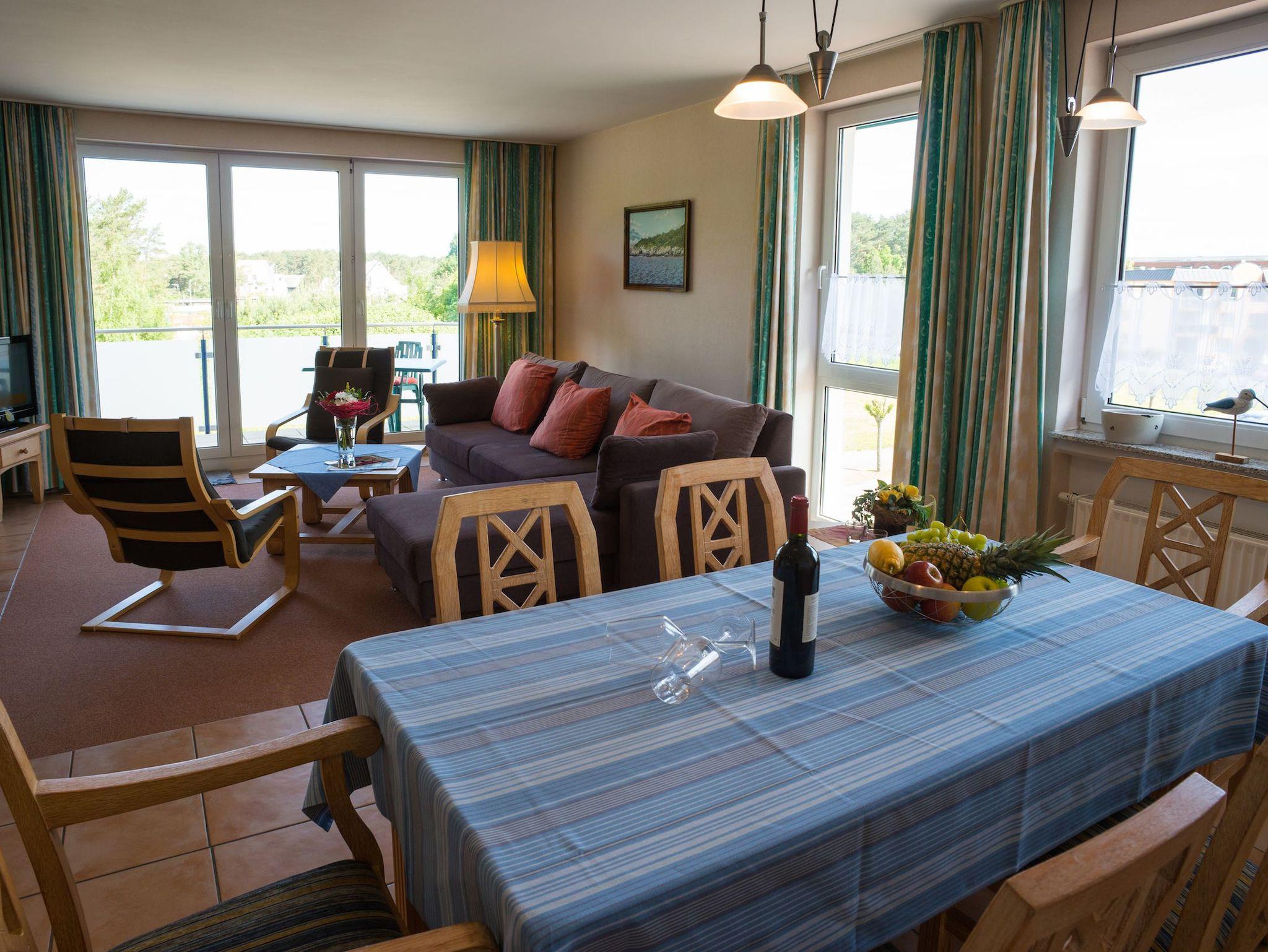 Modern ausgestattete Drei-Raum-Ferienwohnung nahe Ostseestrand in Karlshagen mit Balkon und kostenfreiem WLAN.