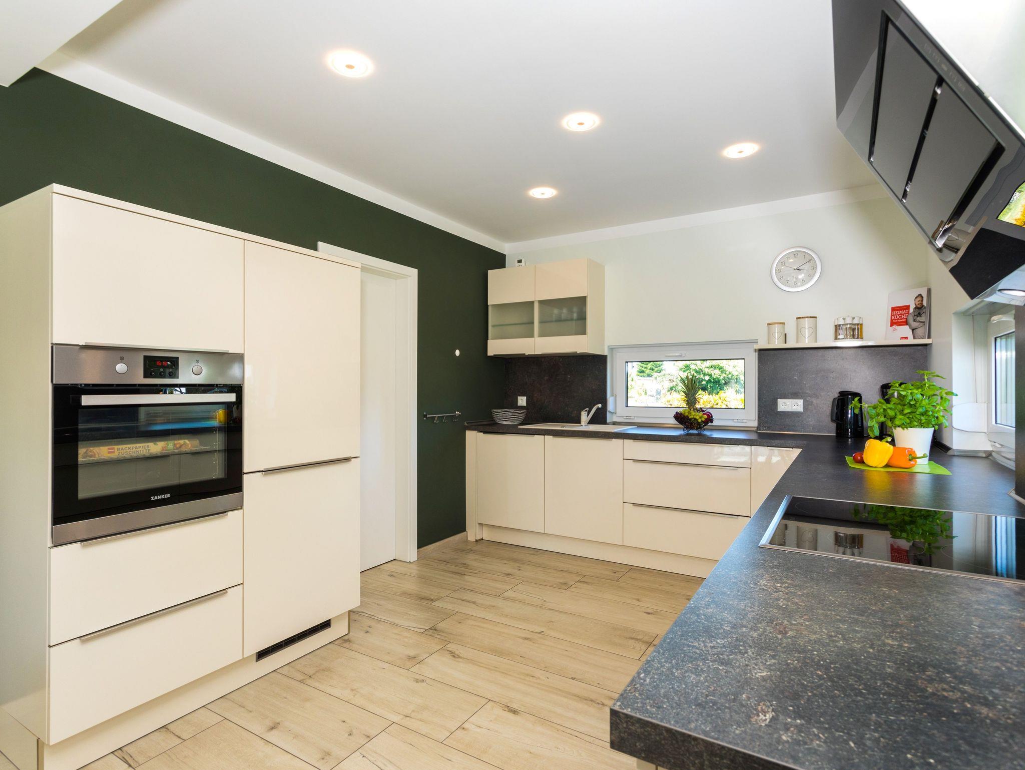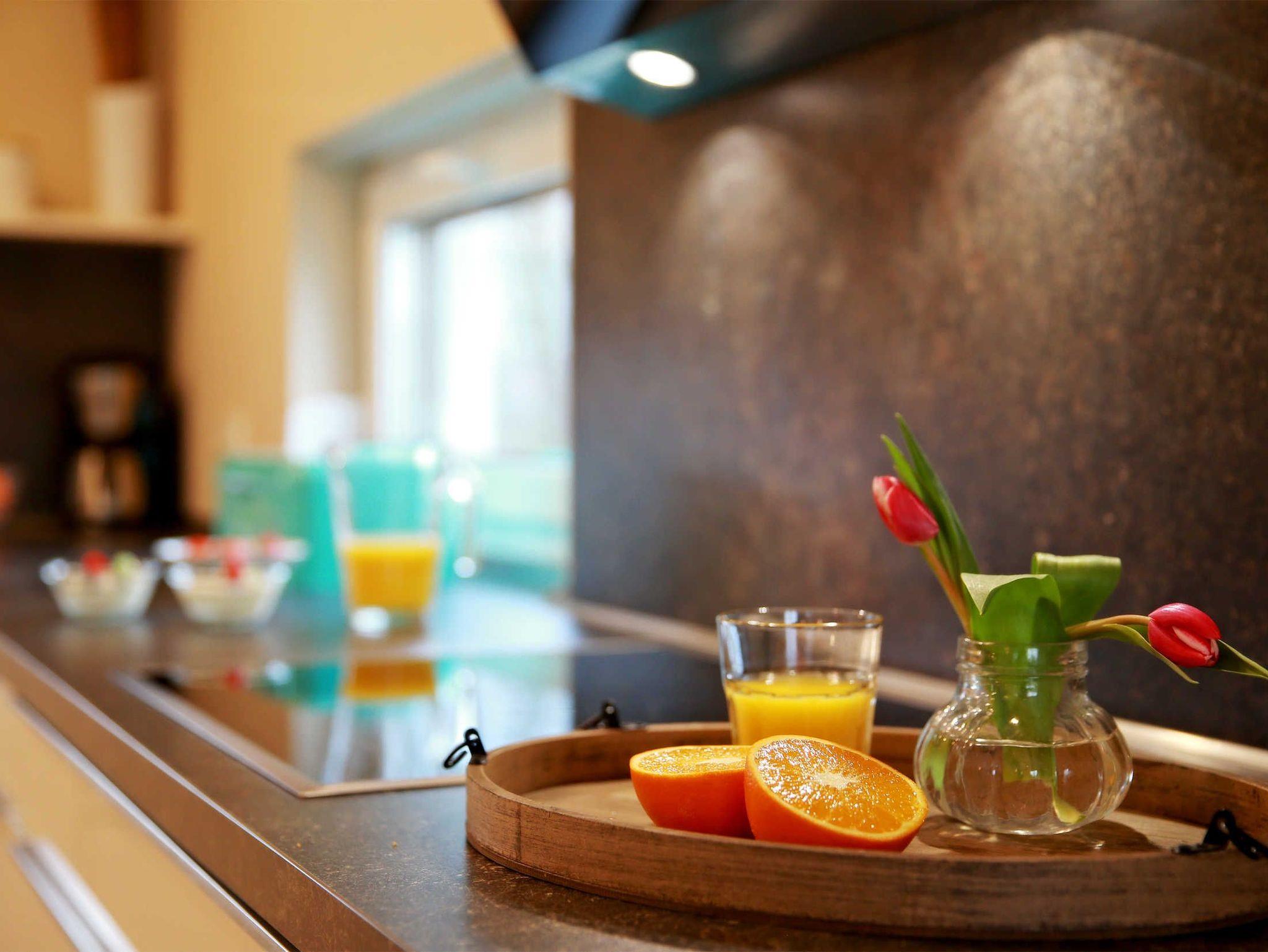 • offene Küche mit Geschirrspüler, Induktionsherd, Backofen, Mikrowelle, Kaffeemaschine, Wasserkocher, Toaster, Kühl-/ Gefrierkombination