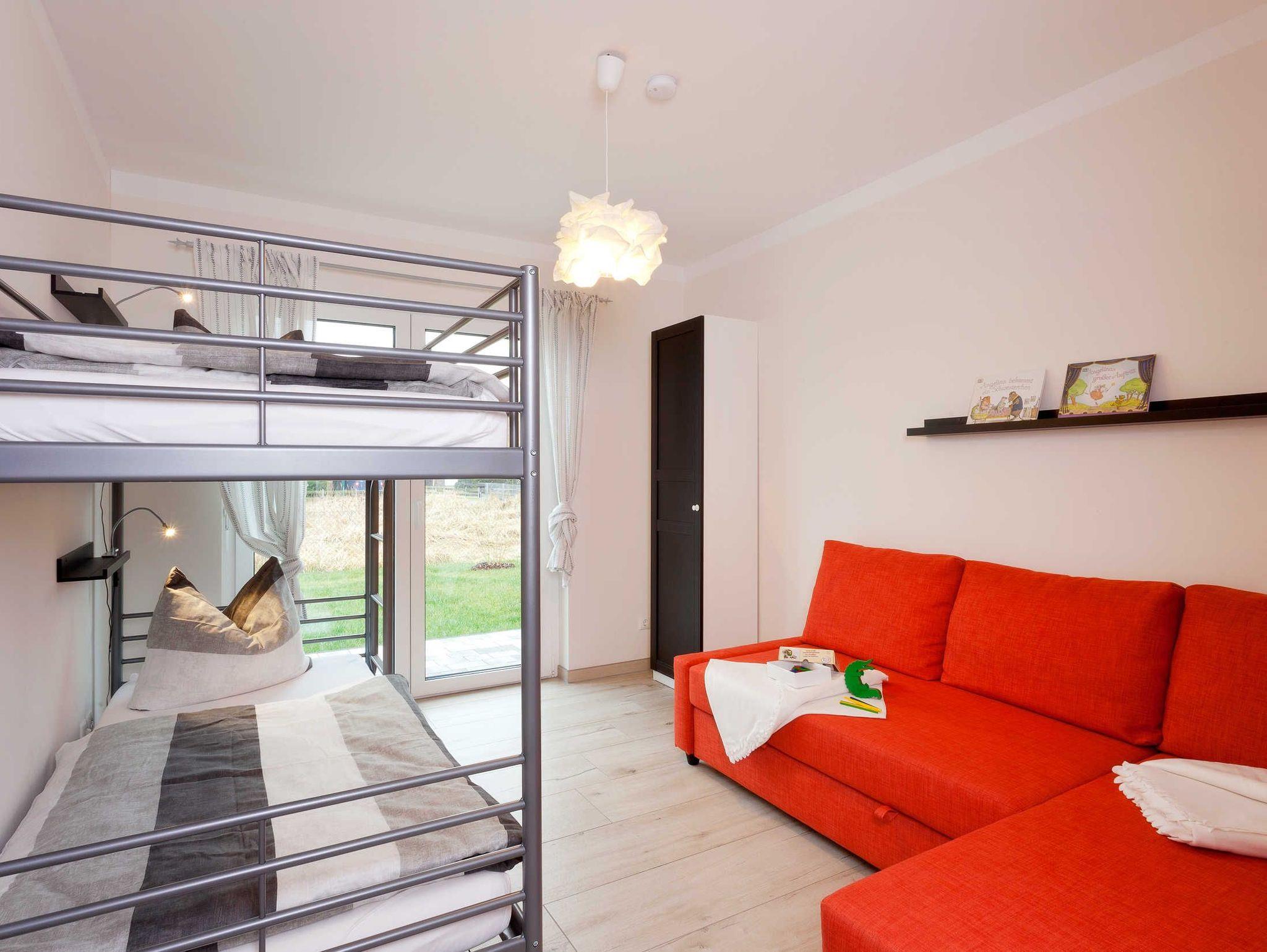 • 1 Schlafraum mit Etagenbett (je ca. 0,90 m x 2,00 m) und einer Schlafcouch (ca. 1,40 m x 2,00 m)