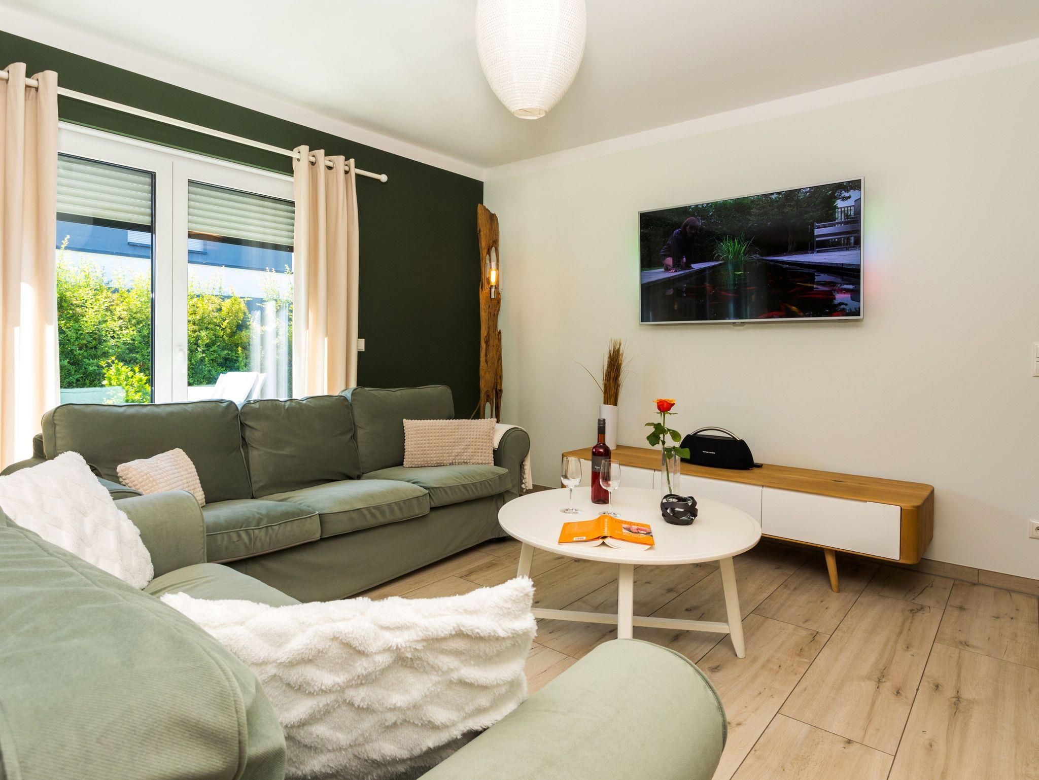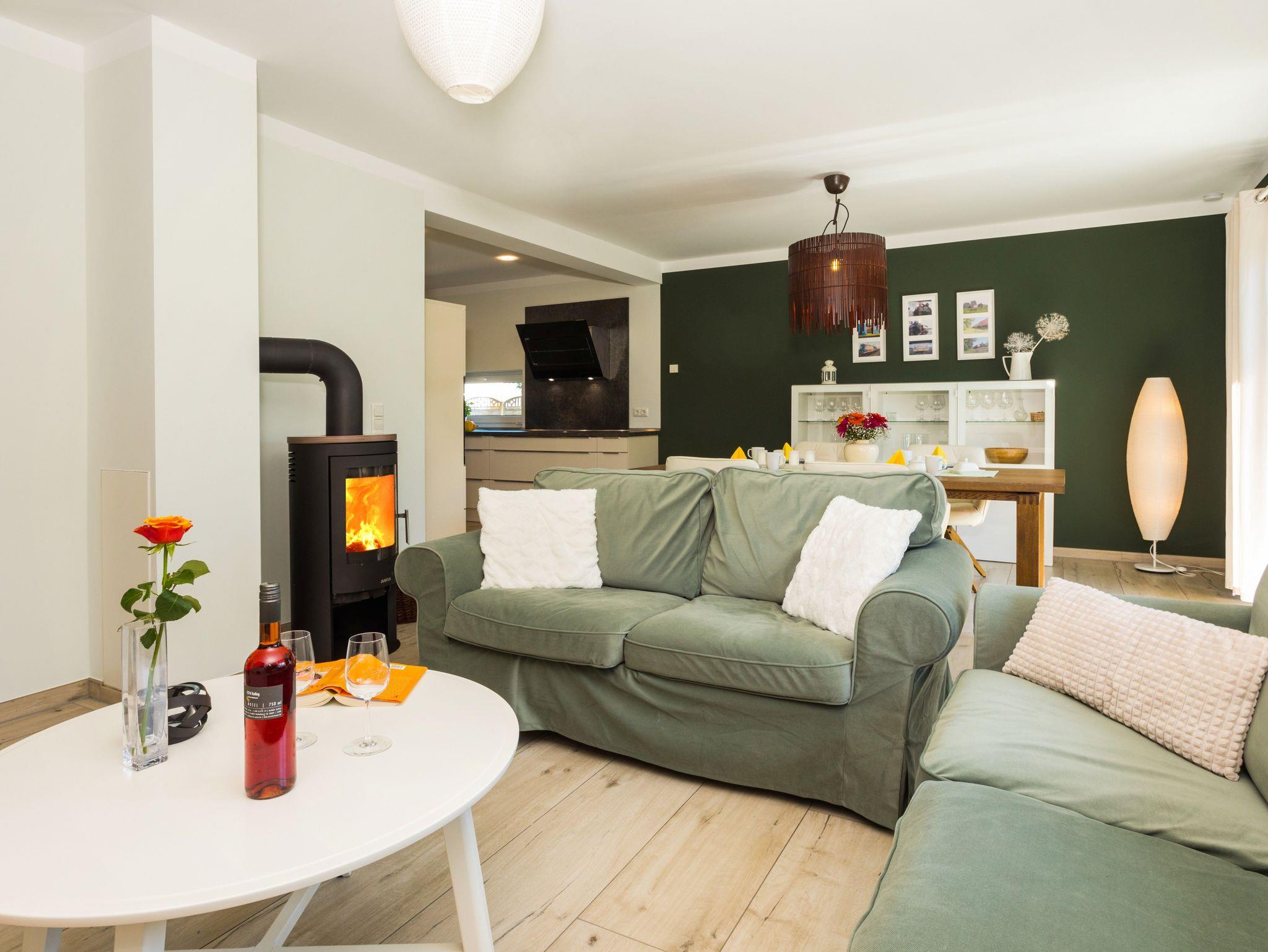 • gemütlicher Wohn- und Essbereich mit Couchgarnitur und Esstisch für 6 Personen, Kamin, Flachbild-TV mit ca. 140 cm Bilddiagonale und 2.1 3D Blu-ray Heimkino System, Internet WLAN