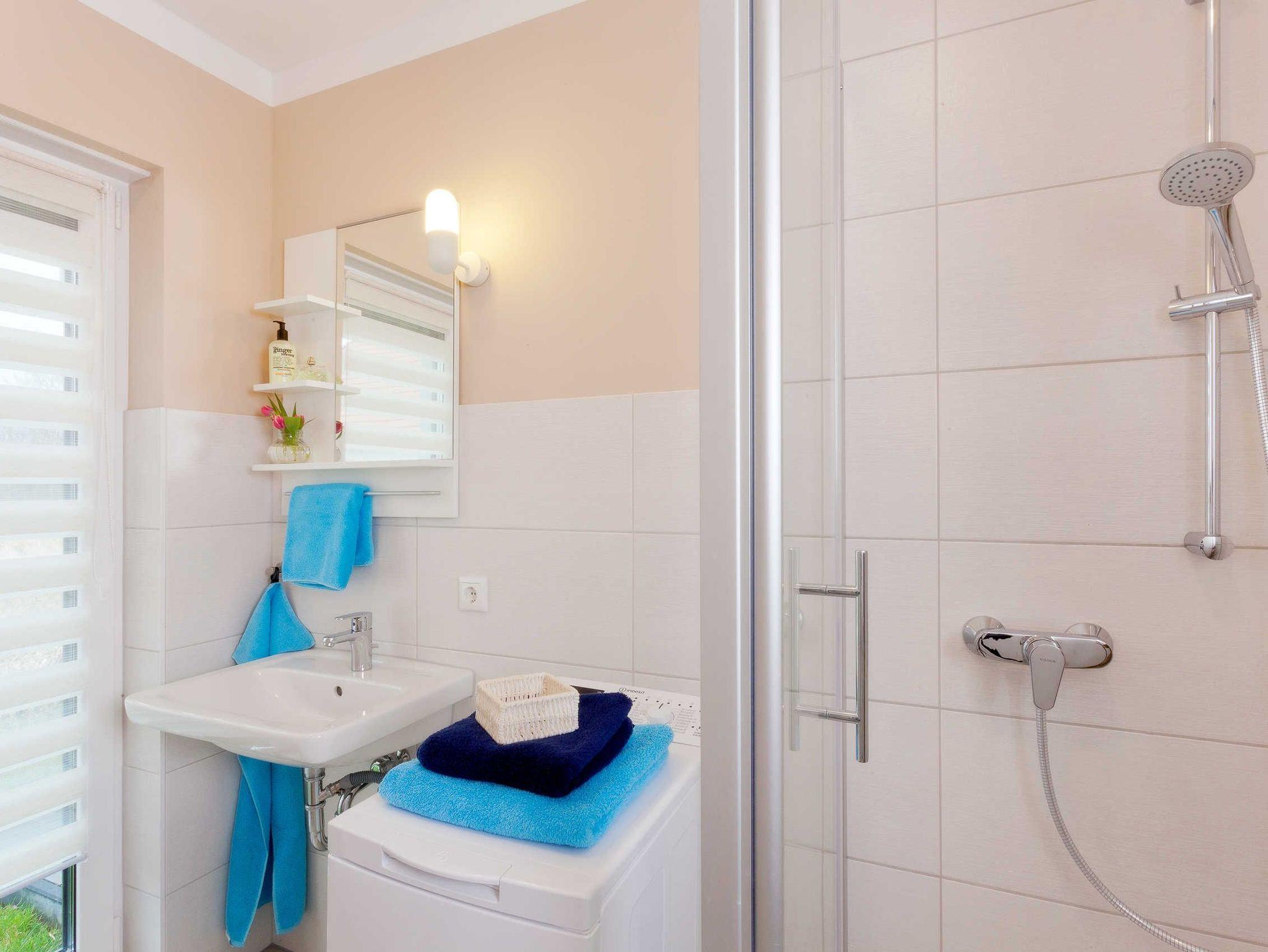 Das 2017 erbaute Ferienhaus in Karlshagen befindet sich in ruhiger Lage und ist ca. 25 Gehminuten vom Strand entfernt. Dieses Ferienhaus mit großer Sonnenterrasse ist mit Terrassenmöbeln ausgestattet und bietet den Gästen reichlich Platz. Es verfügt über Außenrollos, Waschmaschine, Badewanne, Internet-WLAN, 2 PKW-Stellplätze (Carport für 2 PKW) und einen abschließbaren Fahrradschuppen.