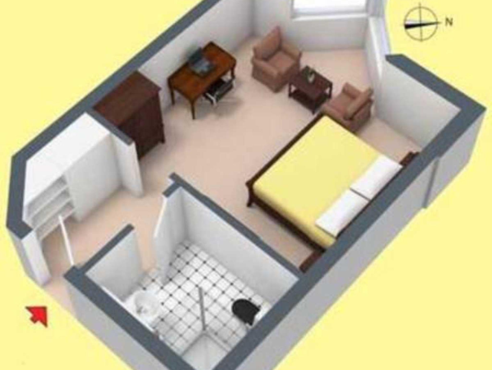 • Doppelzimmer mit Schlafbereich, kleiner Küchenblock im Eingangsbereich, 1 Bad