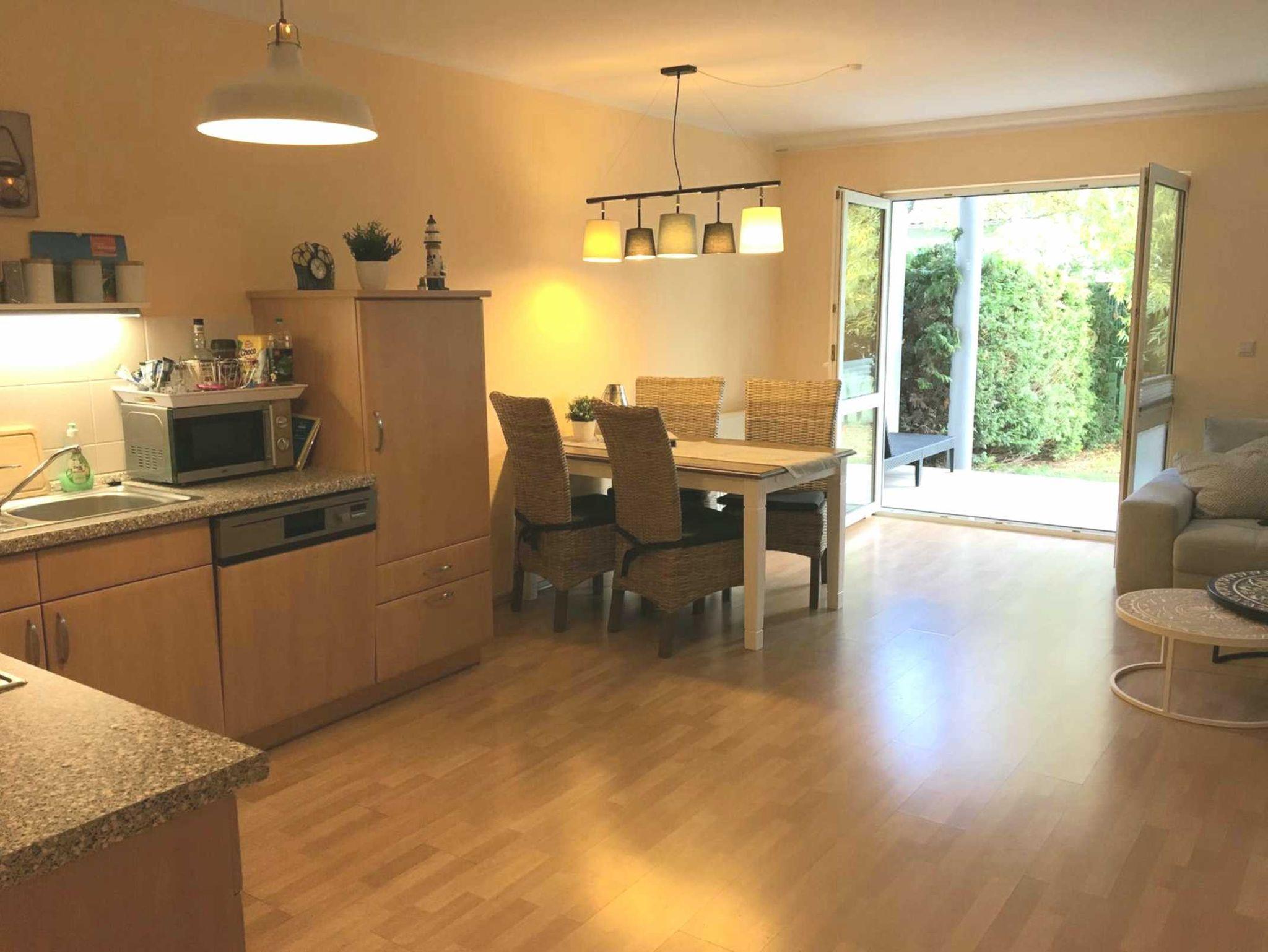 Gemütliche Ferienwohnung Strandgold nahe dem Strand mit Terrasse und Gartenbereich für entspannte Urlaubstage.