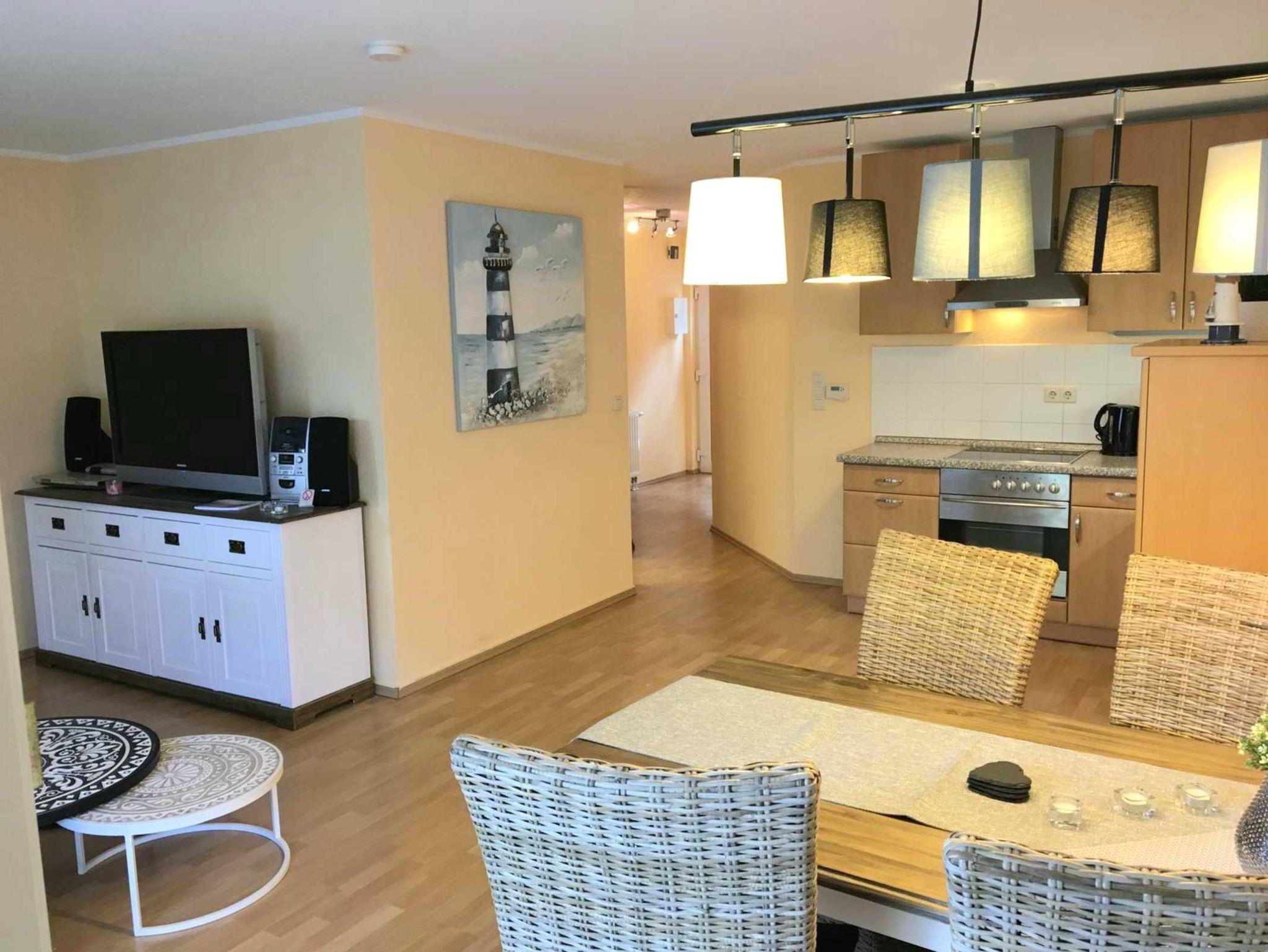 Das Ferienhaus, in welchem sich diese 2-Raum-Erdgeschoss-Wohnung mit einem Schlafzimmern befindet, liegt in der Dünenresidenz mit nur 150 Metern im sehr nahen Strandbereich.