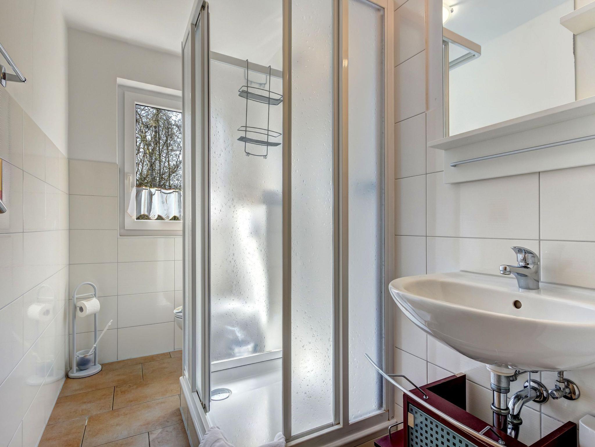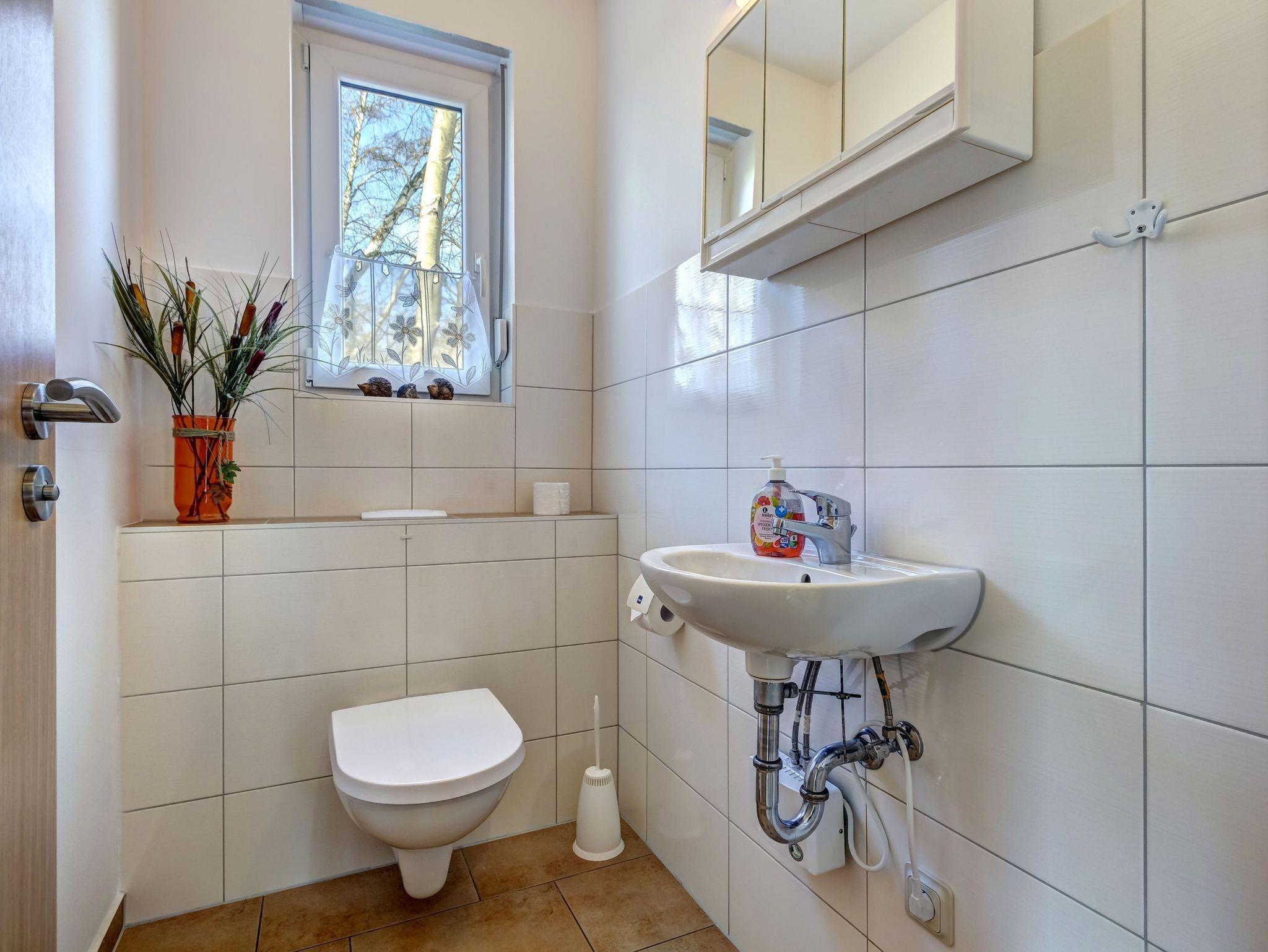 Weiterhin sind im EG das Gäste-WC und ein Abstellraum vorhanden. Im OG befinden sich die beiden Schlafzimmer (1x Doppelbett, 1x 2 Einzelbetten), sowie das Badezimmer mit Dusche und WC. Für unsere kleinen Gäste stehen ein Reisebett und Hochstuhl zur Verfügung.