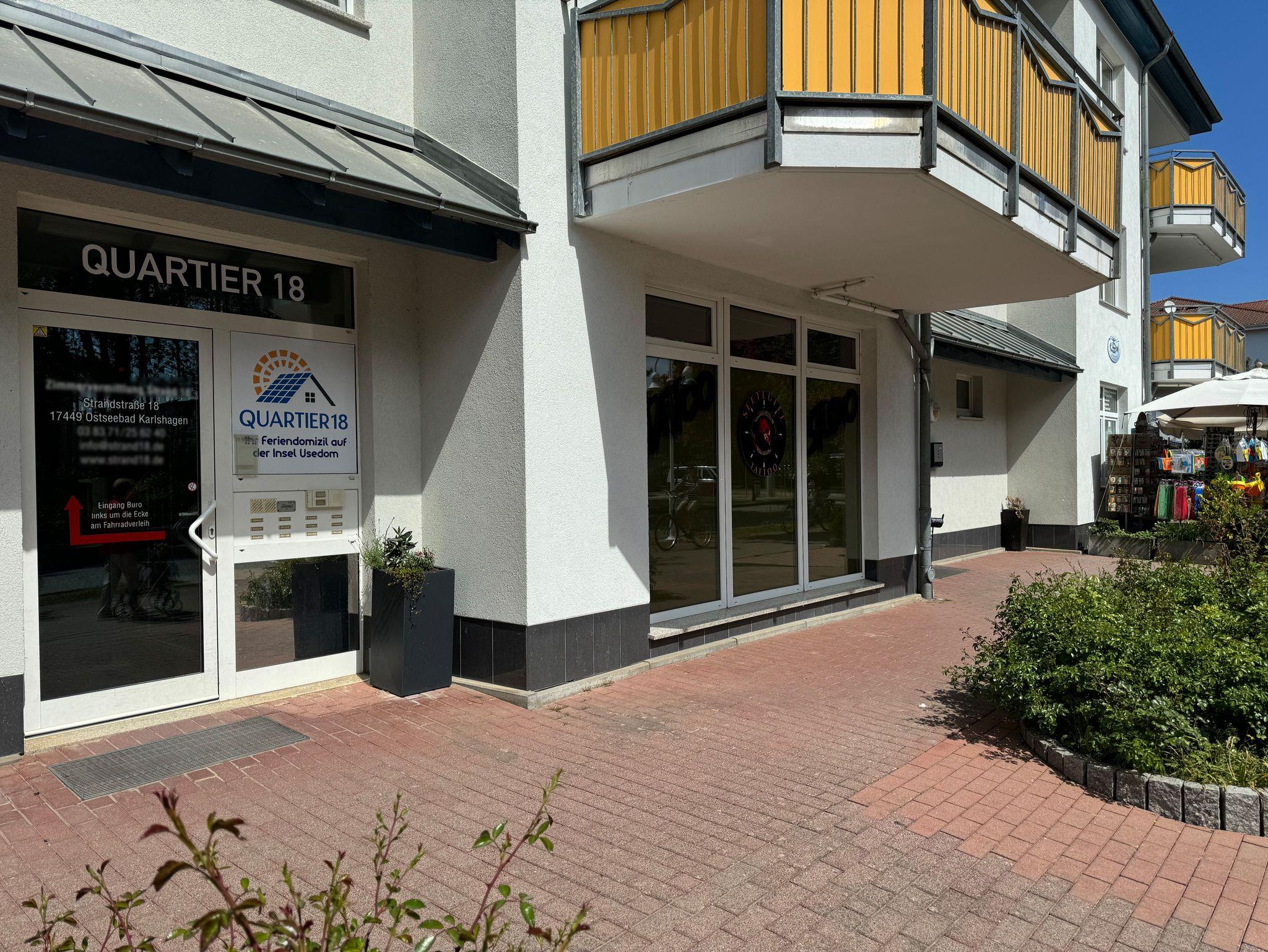 Die Ferienwohnung Q01 im Ferienhaus Quartier 18 liegt in der 1. Etage und bietet auf 75 m² Platz für bis zu 4 Personen und 1 Baby, welches noch im Kinderbett schläft. Die 3-Raum-Wohnung verfügt über zwei Schlafzimmer, ein modernes Bad mit ebenerdiger WALK-IN-Dusche und eine zusätzliche Gästetoilette. Vom gemütlichen Wohnzimmer aus gelangen Sie auf einen großen Balkon mit Blick auf die lebendige Strandstraße.