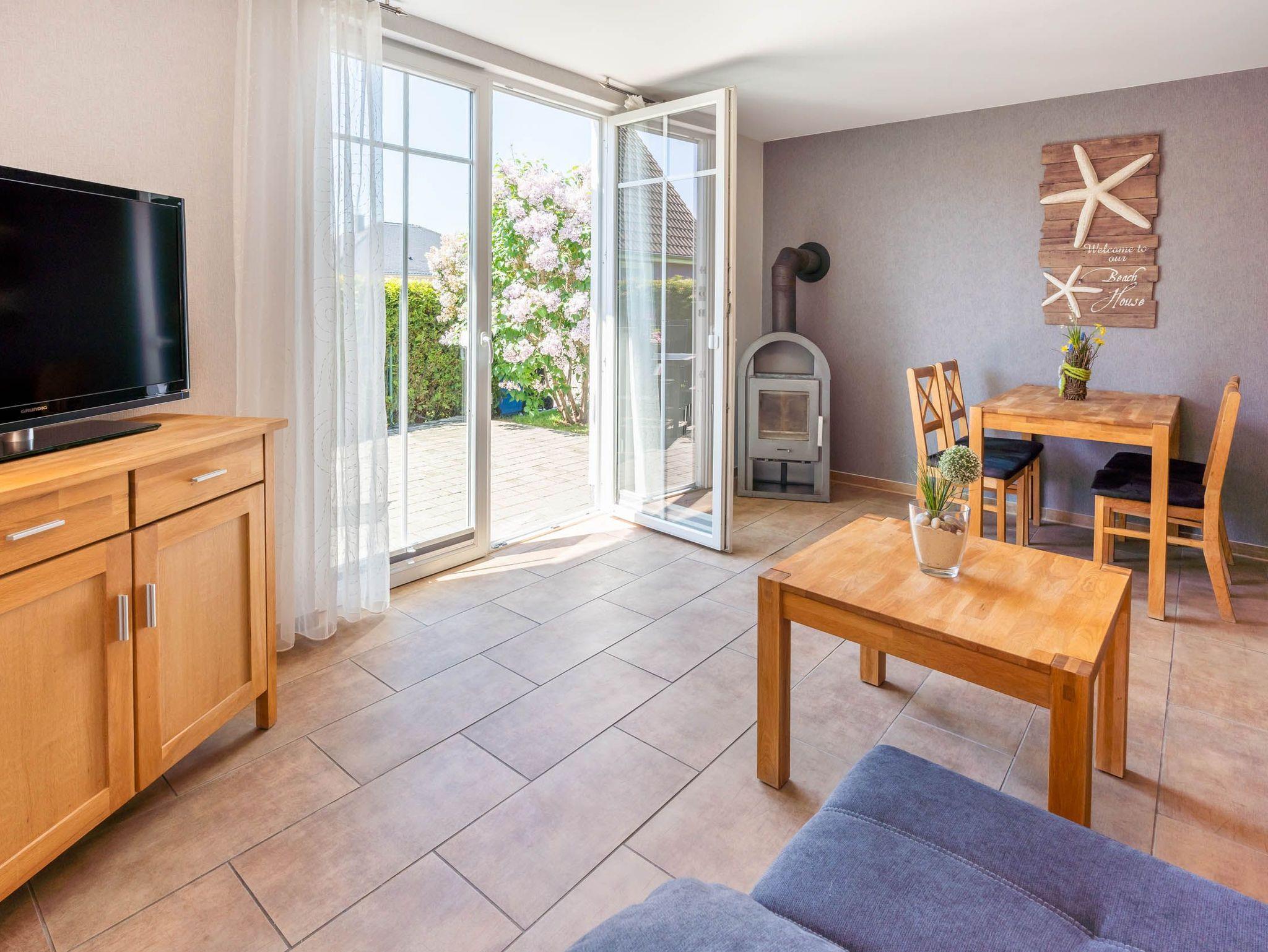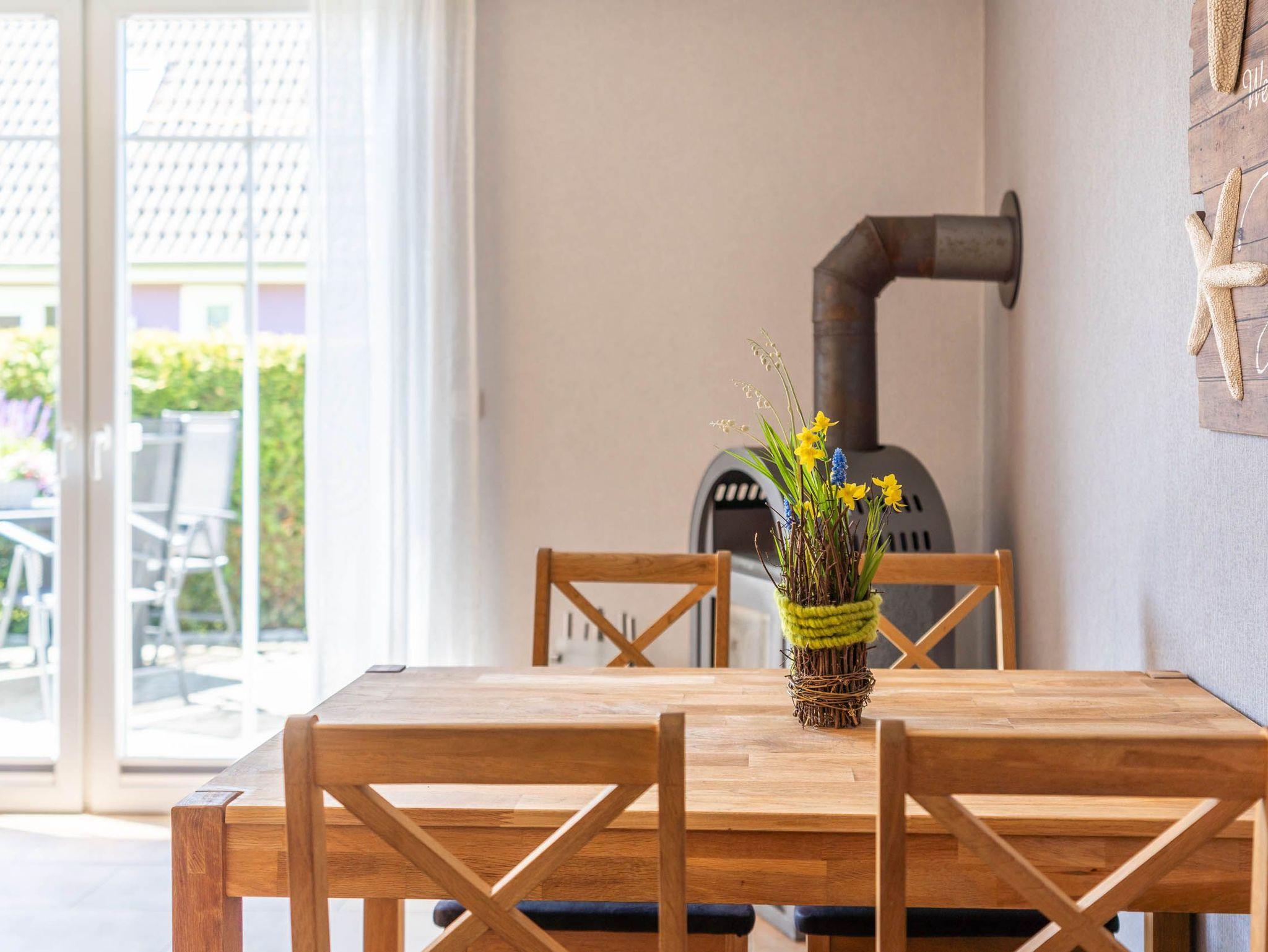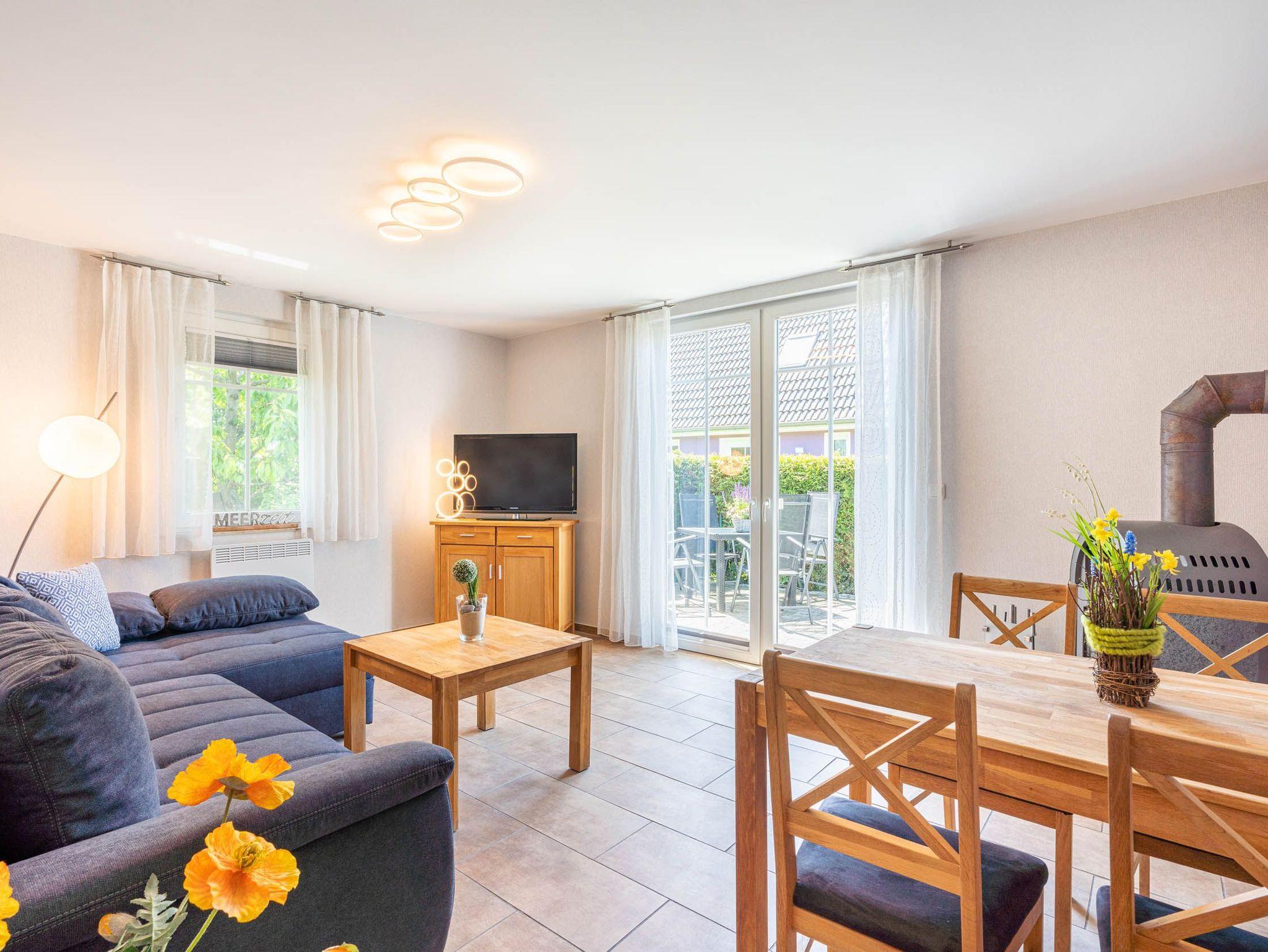 Ferienhaus Mimi in Karlshagen bietet gemütlichen Komfort mit Kamin, Terrasse und separater Küche, ideal für Familien.