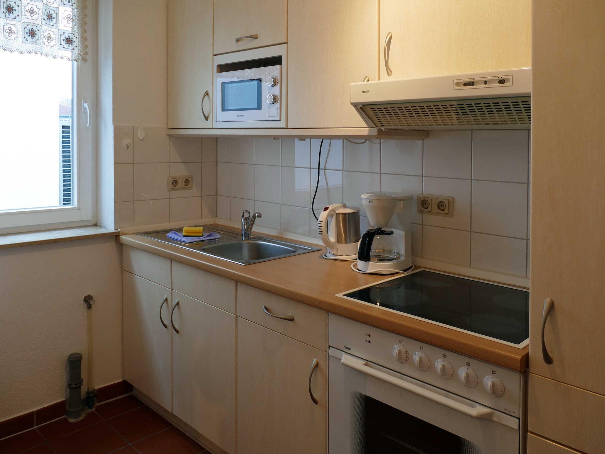 ? Küche mit Herd und Backofen, Kühlschrank, Kaffeemaschine, Wasserkocher, Geschirr und Besteck u.v.m.