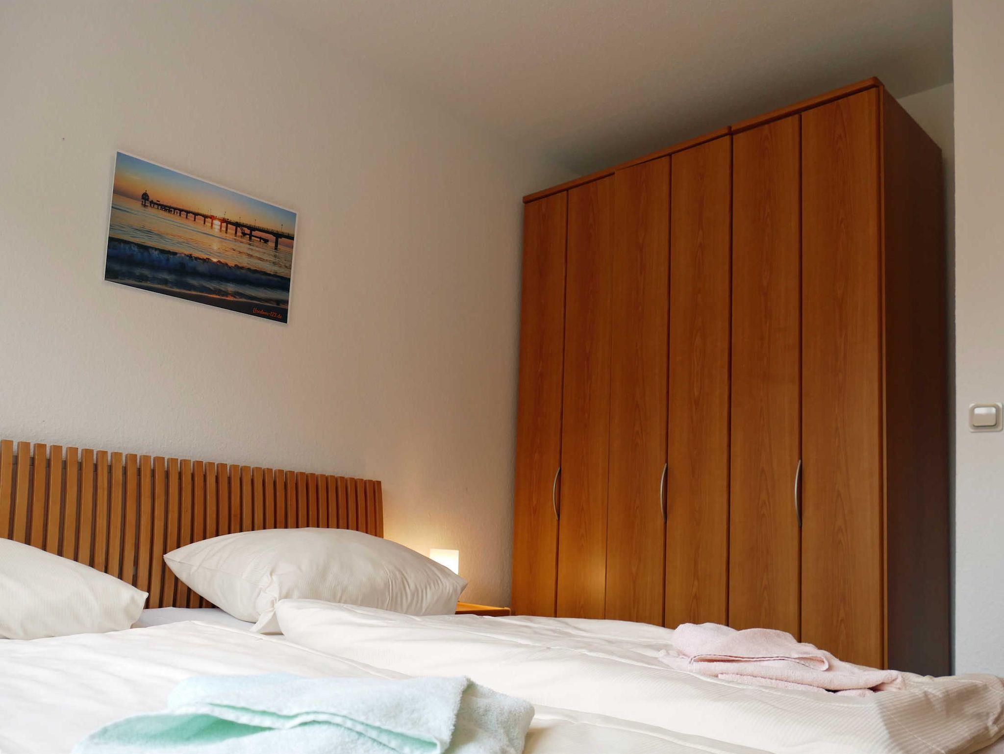 Das Schlafzimmer ist mit einem Doppelbett (1,80/2,00m) und einem Kleiderschrank ausgestattet.