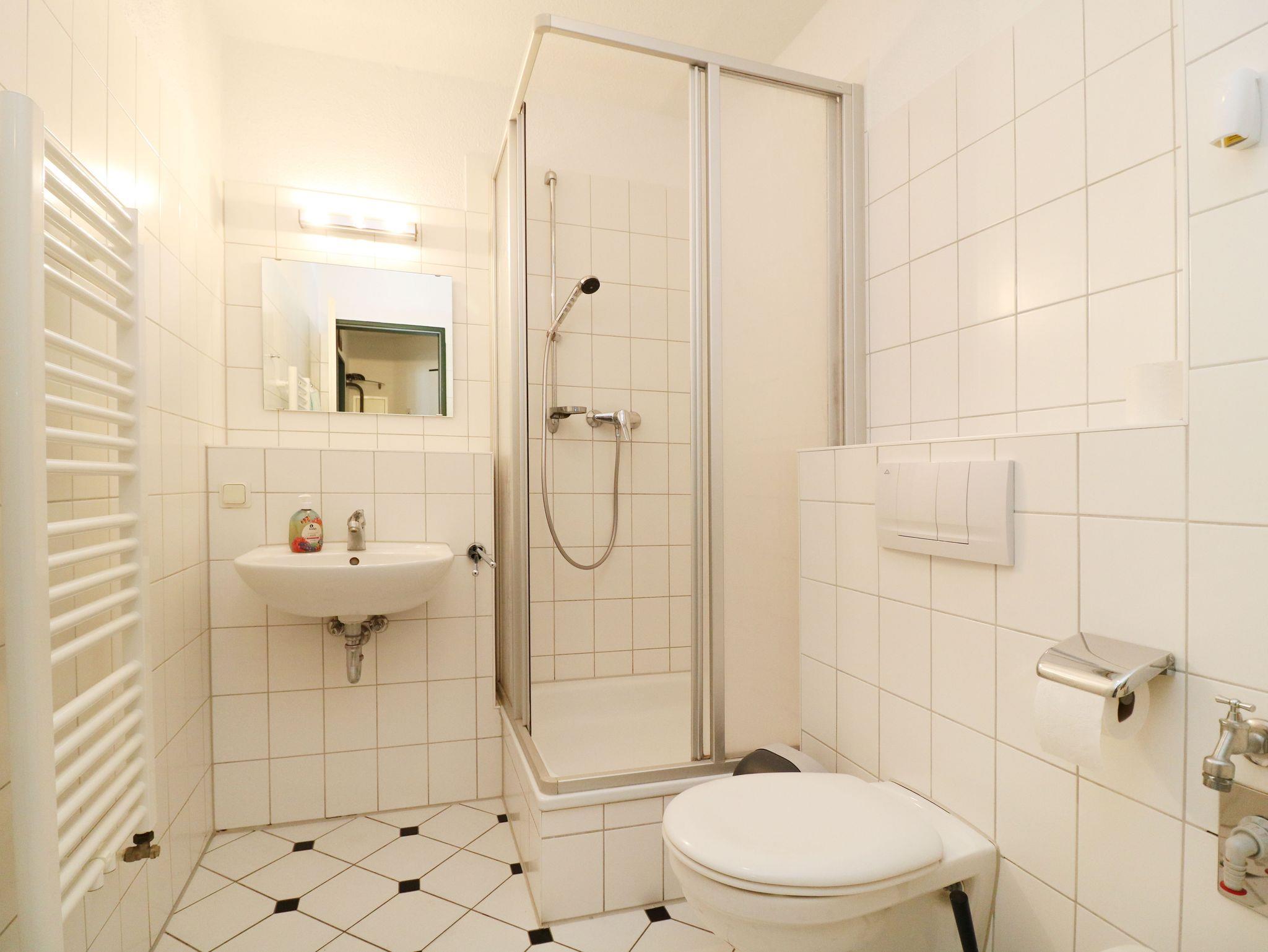 • Badezimmer: Das Badezimmer ist mit einer Dusche, einem Waschtisch und einem WC ausgestattet.