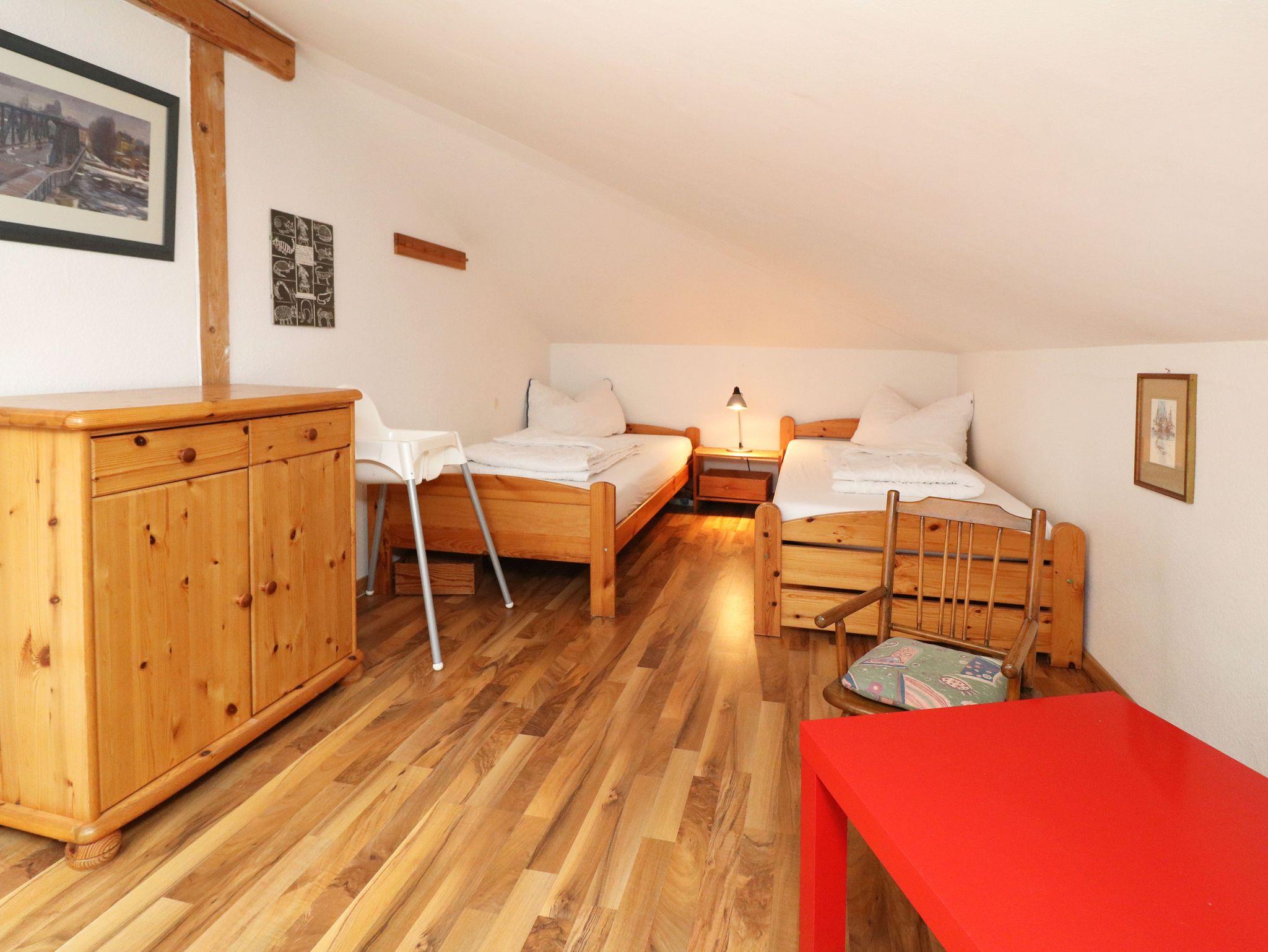 Wir empfehlen die Ferienwohnung für 4 Personen und ggf. ein Baby, welches noch im Babybett schläft. Auf der Galerie steht eine Polsterliege als zusätzliche Schlafmöglichkeit zur Verfügung, wodurch die Belegung um 1 Person aufgestockt werden kann.