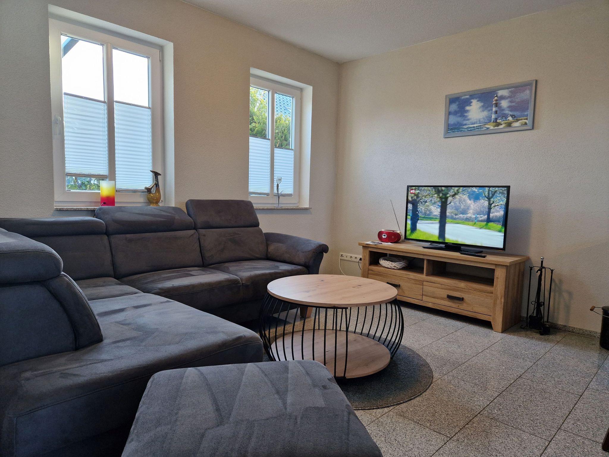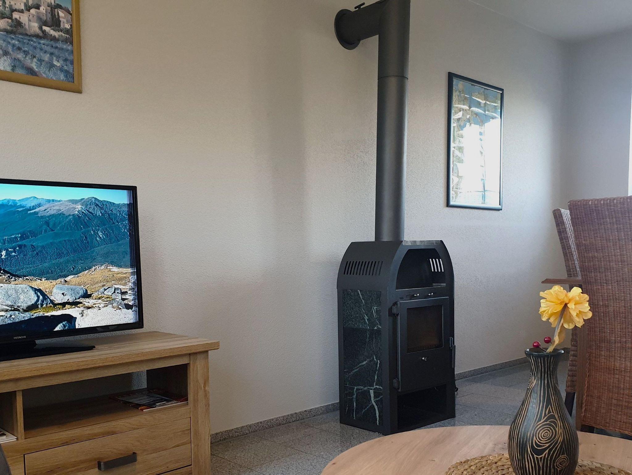 Gemütlicher Wohnbereich mit Kaminofen & Flachbild-TV,