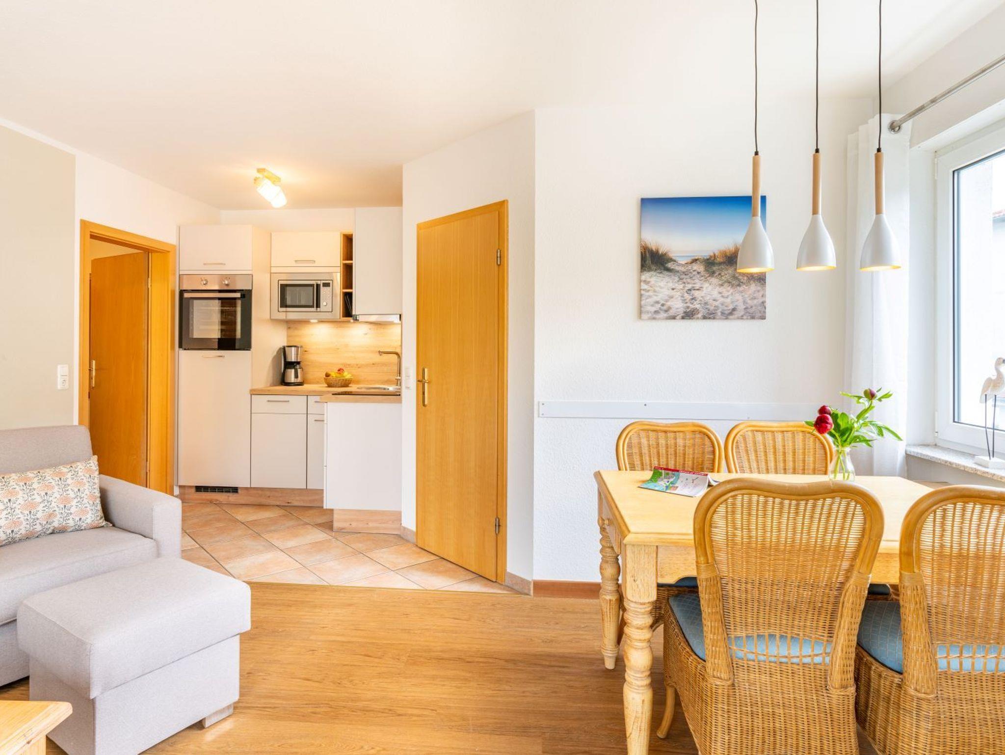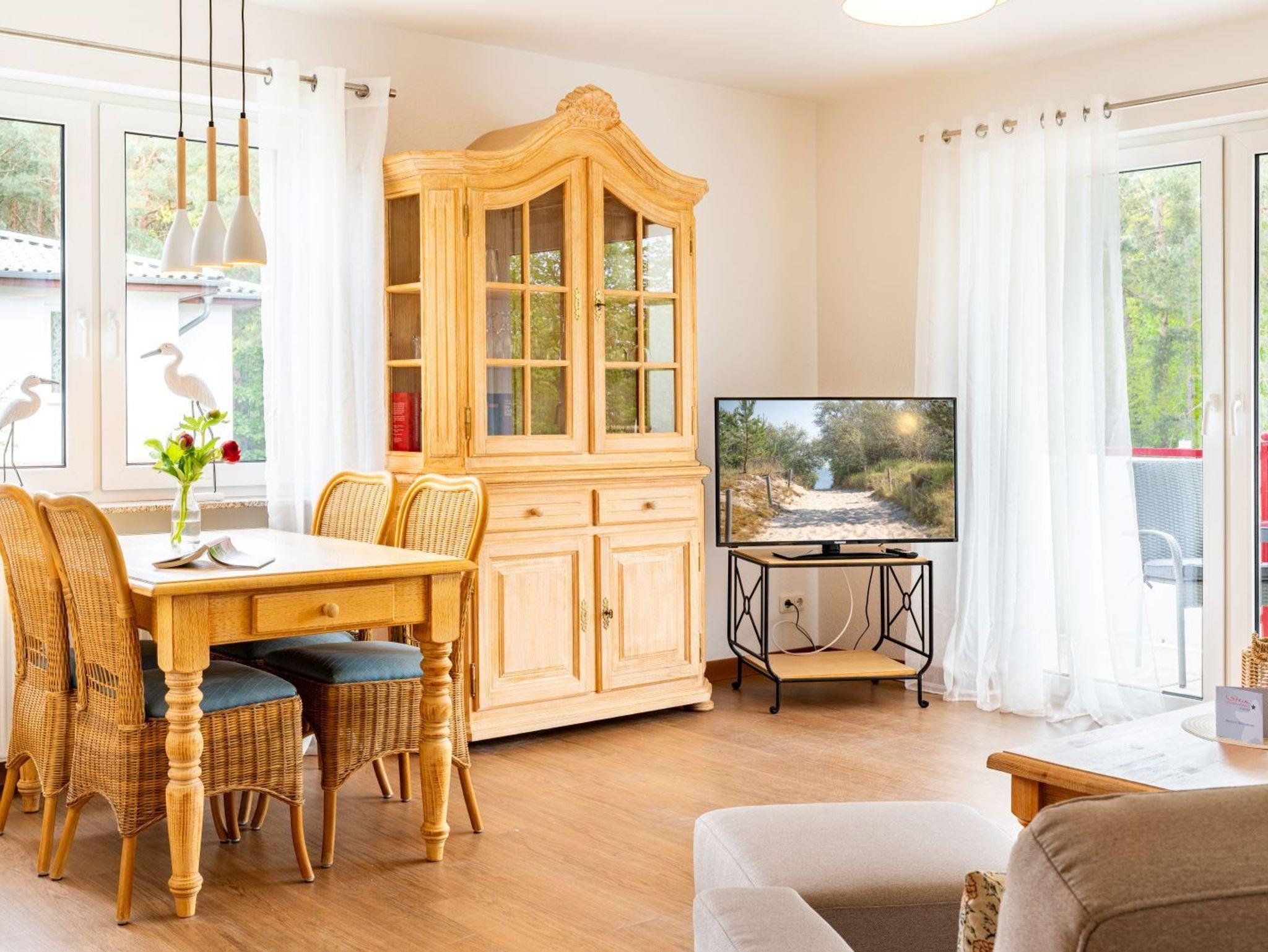 Die voll ausgestattete Küche lädt dazu ein, Ihre Lieblingsgerichte zuzubereiten. Hier finden Sie alle notwendigen Geräte und Utensilien, um Ihre Mahlzeiten ganz nach Ihrem Geschmack zuzubereiten. Genießen Sie Ihre Köstlichkeiten dann am Esstisch im Wohnbereich oder auf dem Balkon, während Sie die frische Ostseeluft und die malerische Umgebung genießen.