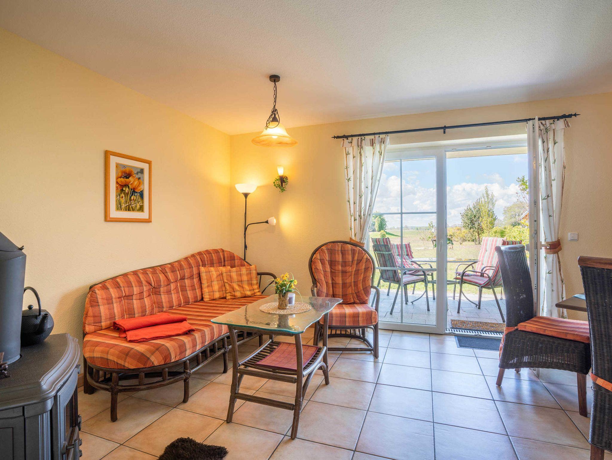 Die 2-Raum-Ferienwohnungen 01,02,05 und 06 befinden sich im Erdgeschoss und verfügen alle über eine Terrasse zum Garten.