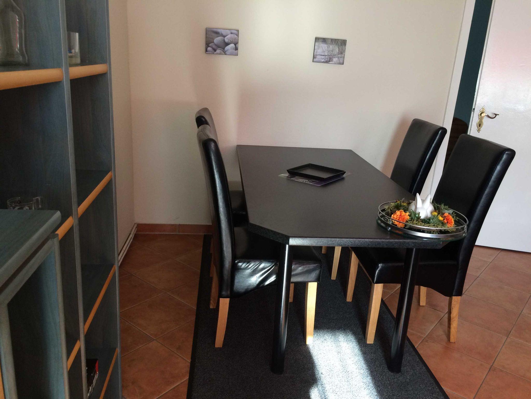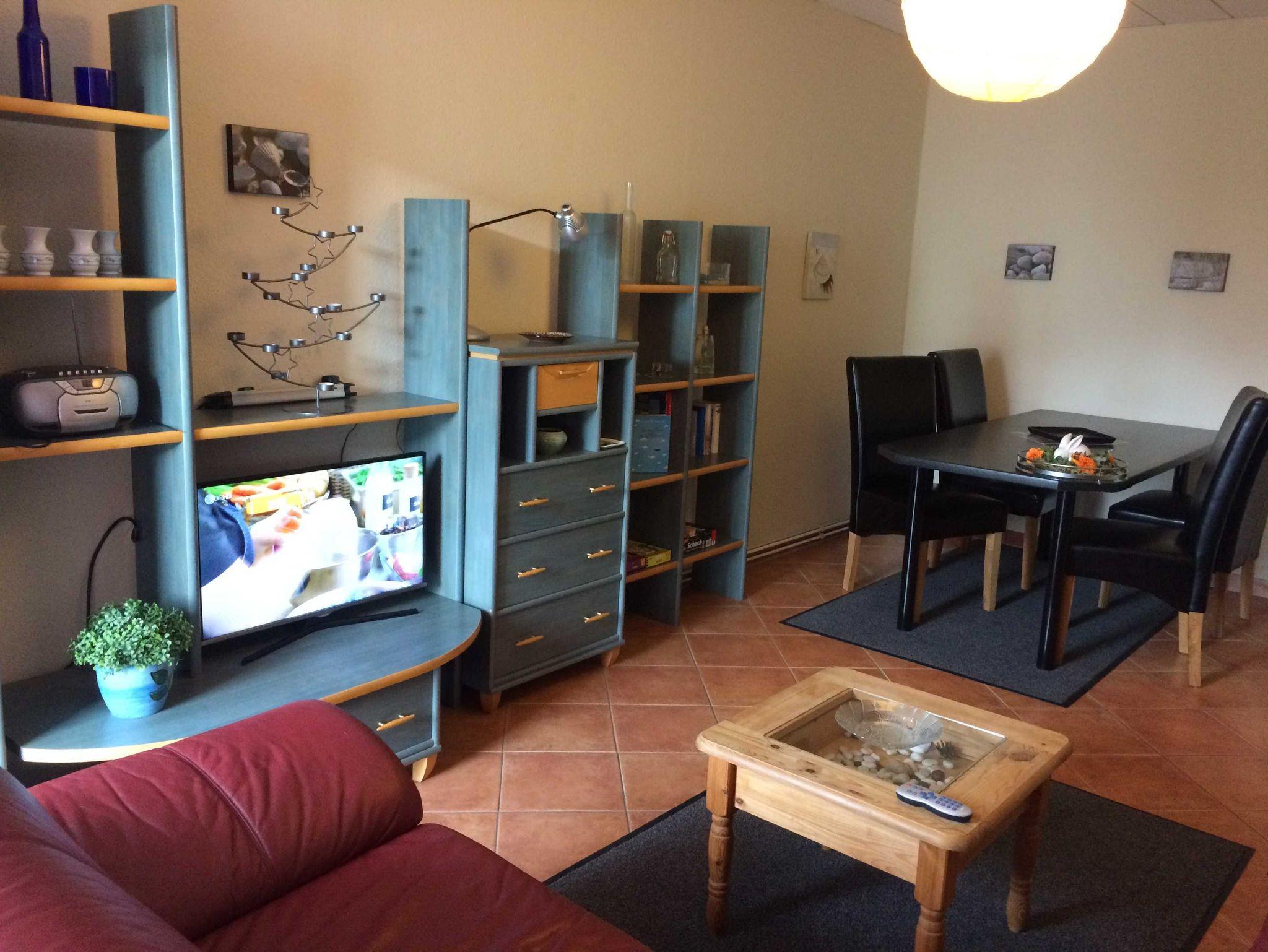 Ausstattung: Die Größe der Ferienwohnung beträgt ca 65m² und beinhaltet 1 Wohnraum mit Couchgarnitur (2u.3-Sitzer). Dazu befindet sich eine Küche mit Backofen, Cerankochfeld, Geschirrspüler, Kaffeemaschine. Das Geschirr ist ausgelegt für 5 Personen.Es befindet sich außerdem ein Essplatz, 2 Schlafräume (1xDoppelbett /2Pers.) 1x 2Einzelbett und ein Kinderbett. Das Badezimmer ist ausgestattet mit einer Badewanne/WC. Auf den Balkon können Sie es sich gemütlich machen. Gartenmöbel befinden sich entsprechend drauf.
