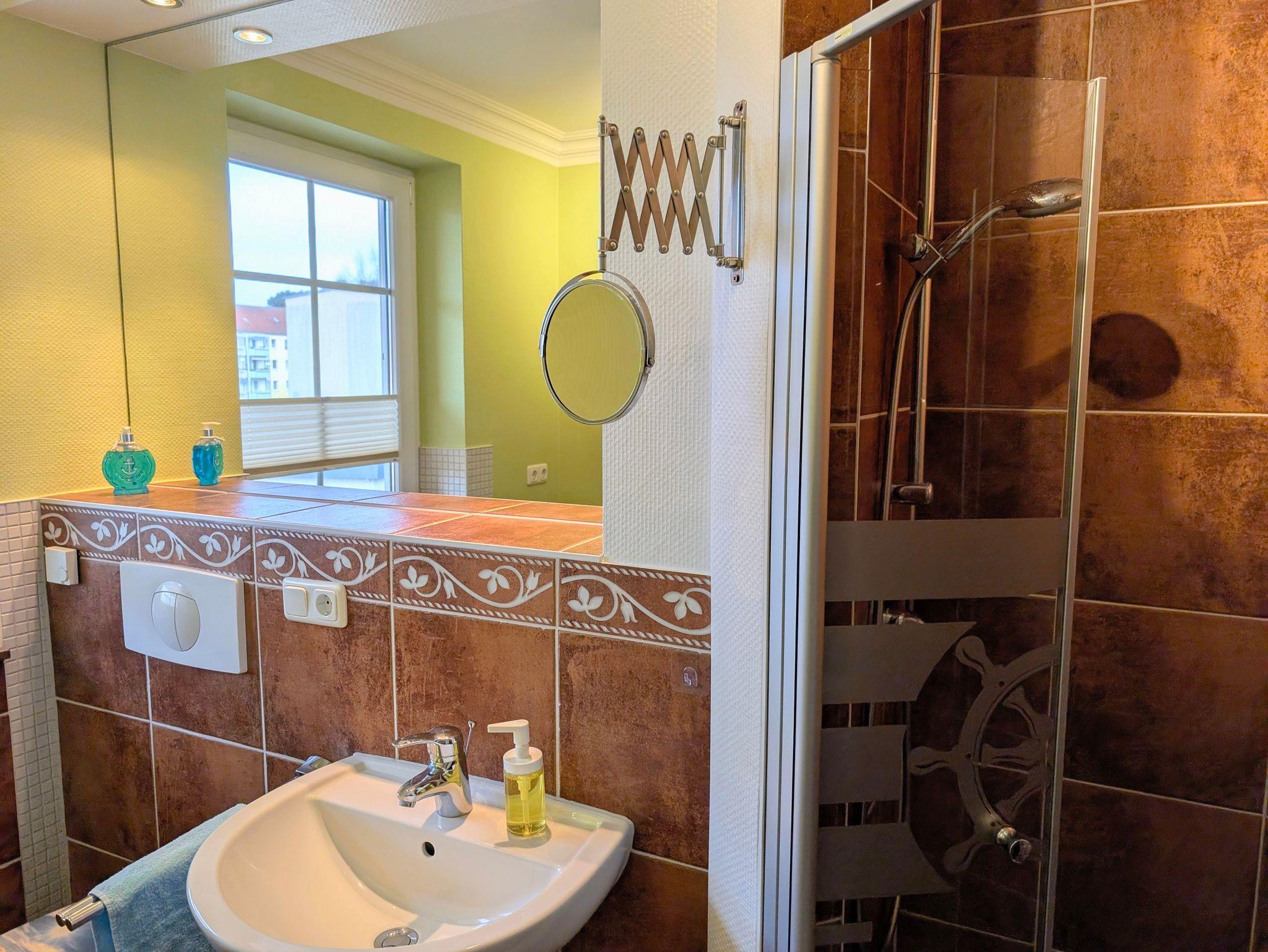 - Bad mit Dusche, Waschtisch und WC