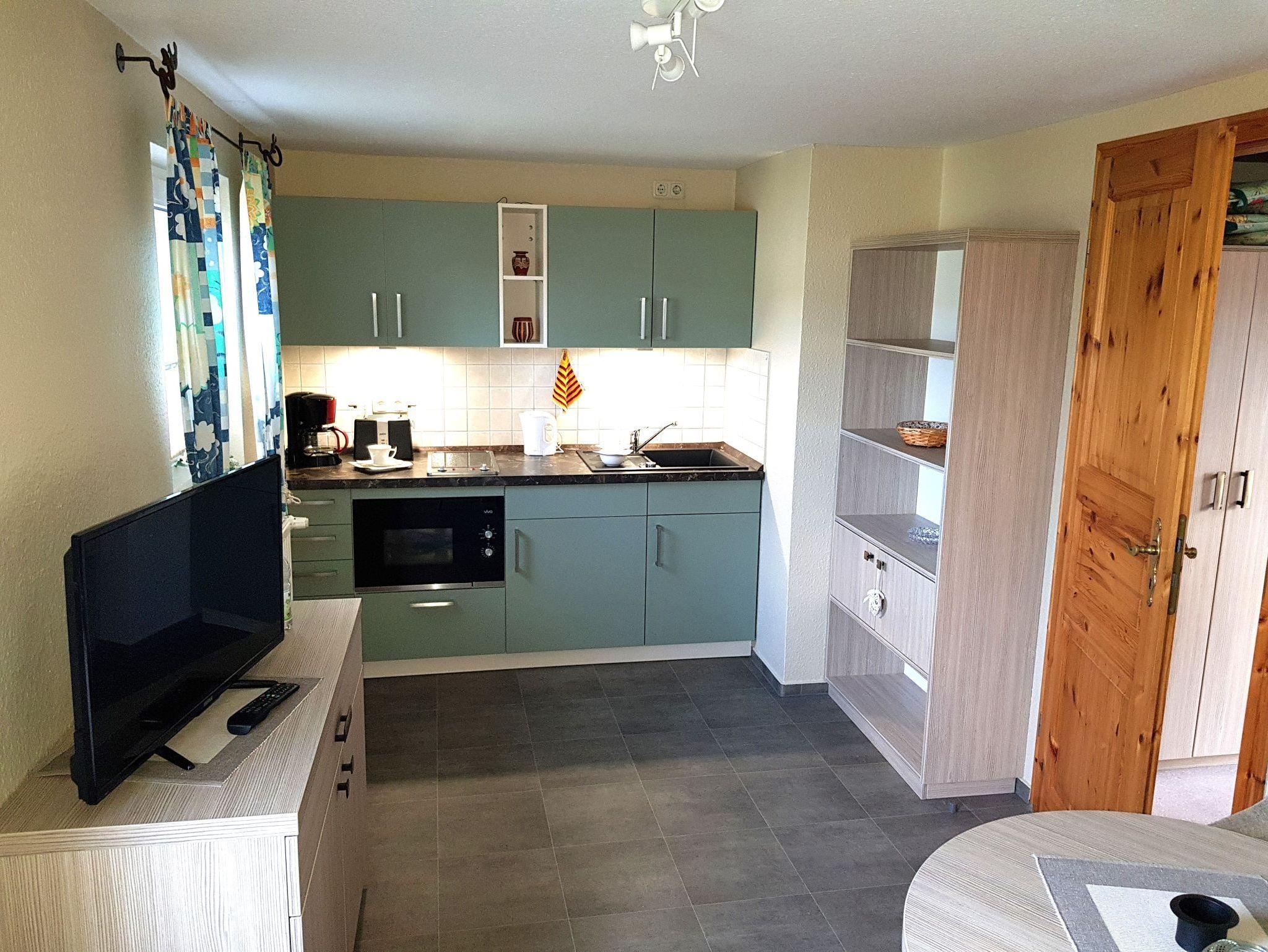 Sie wohnen in einer komplett ausgestattetem 25 m² 2-Raum-Ferienwohnungen mit hellen Möbeln. Die 2-Zi.-Wohnungen sind für 2 Personen und 1 Kind bis 12 Jahre ausgelegt und haben: ? 1 Wohnraum ? 1 Schlafzimmer, 2 Betten (Aufbettung im Wohnzimmer möglich), ? Dusche/WC ? Küchenzeile ? TV, ? Möblierte Terrasse, Liegewiese ? Parkplatz am Haus