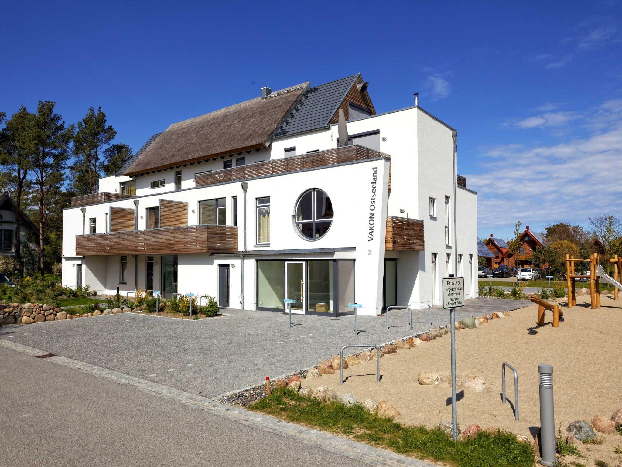 VAKON Ostseeland in Karlshagen ist eine in Mecklenburg-Vorpommern einzigartige Ferienhaus-Anlage mit 42 großzügigen, schilfrohrgedeckten Strandhäusern mit bis zu 220 m² Wohnfläche und 26 Ferienwohnungen mit bis zu ca. 180 m² Wohnfläche. Dieses exklusive Appartementhaus (Baujahr 2013) mit 8 Wohneinheiten ist ca. 4 Gehminuten vom Strand entfernt. Die Wohnungen verfügen über Waschmaschine, kostenloses Internet WLAN, Terrasse oder Balkon und Pkw-Stellplatz.