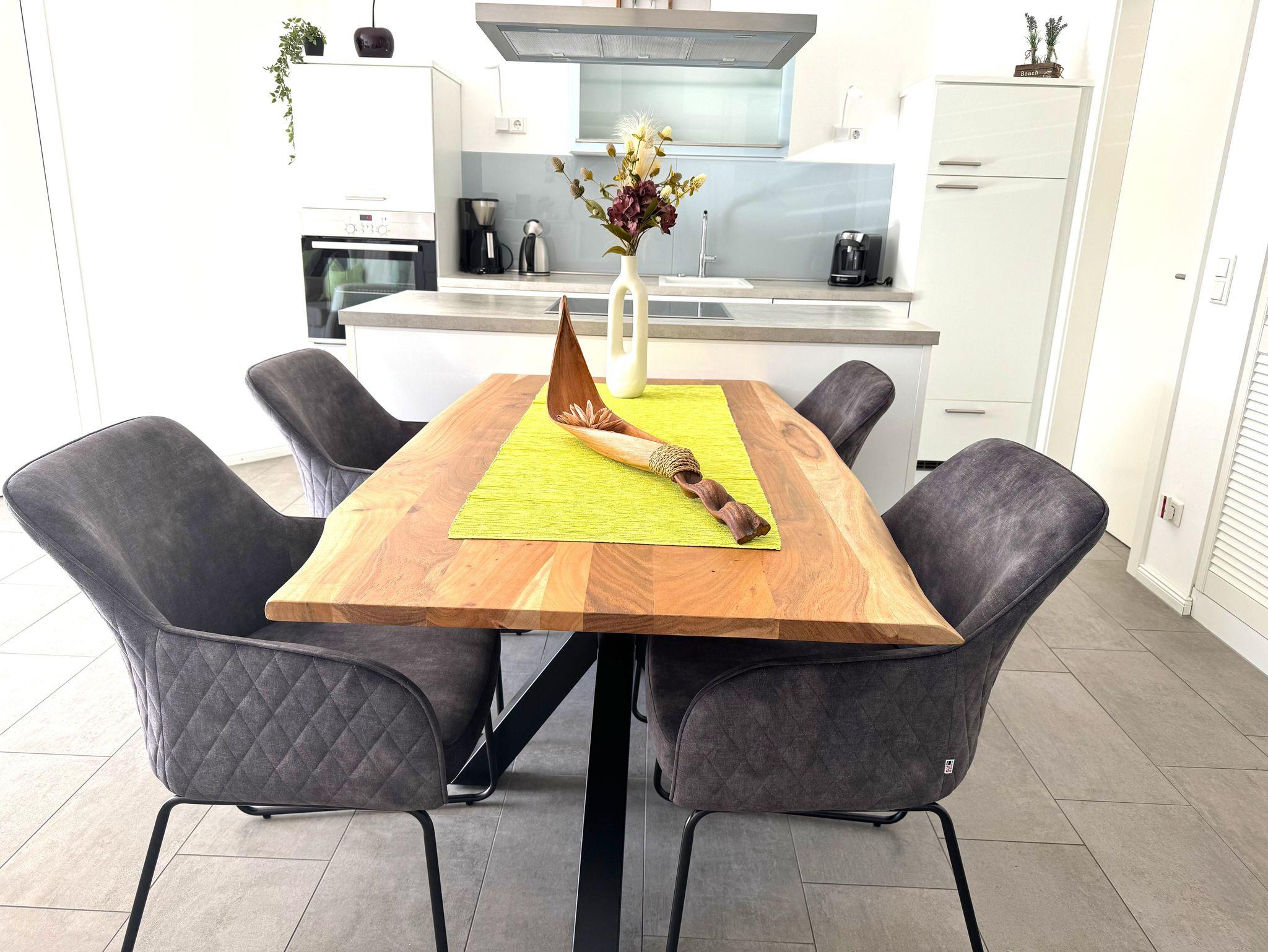 Exklusive Ferienwohnung mit einer Wohnfläche von ca. 62 m², hochwertig ausgestattet u. a. mit Verdunkelungsgardinen, Fußböden aus Feinsteinzeug auf der gesamten Wohnfläche, Fußbodenheizung, Nichtraucherwohnung, sep. Eingangsbereich, Waschmaschine und Internet-WLAN.