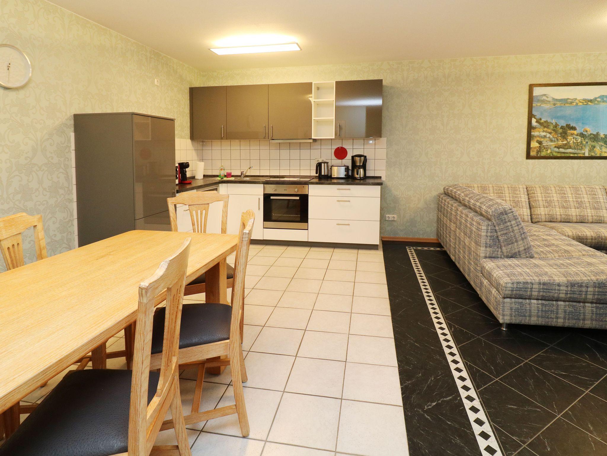 Die moderne, vollständig ausgestattete Küche ermöglicht eine komfortable Selbstverpflegung. Ein eigener, kostenfreier Parkplatz mit Absperrpfosten (umgeklappt nur etwa 8 cm hoch) gehört ebenfalls zur Wohnung.