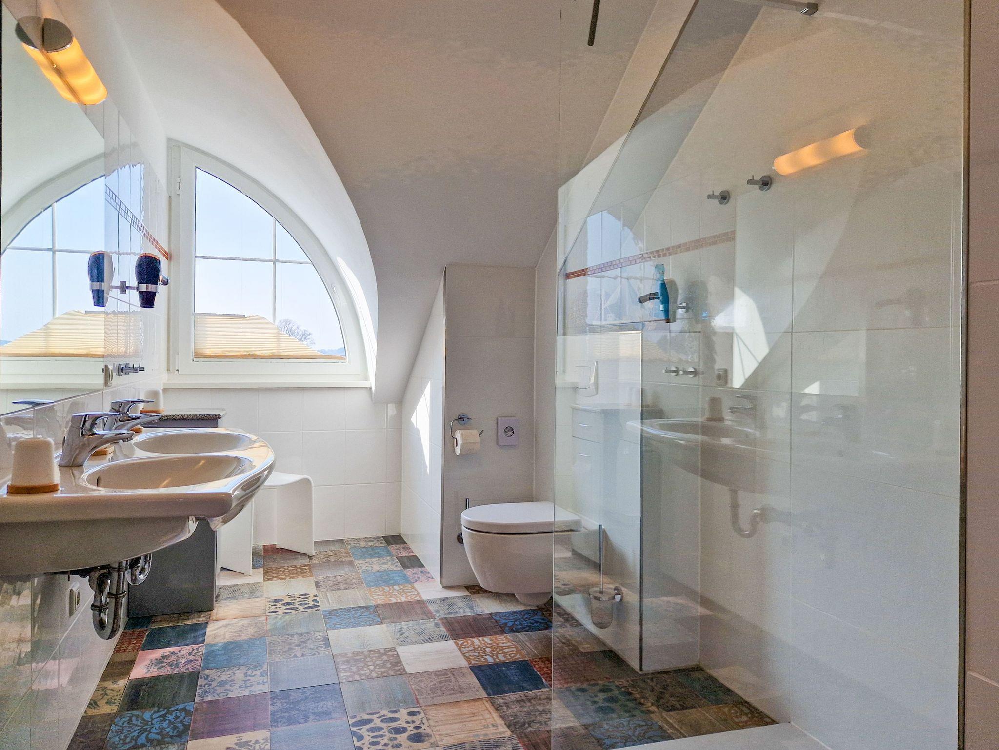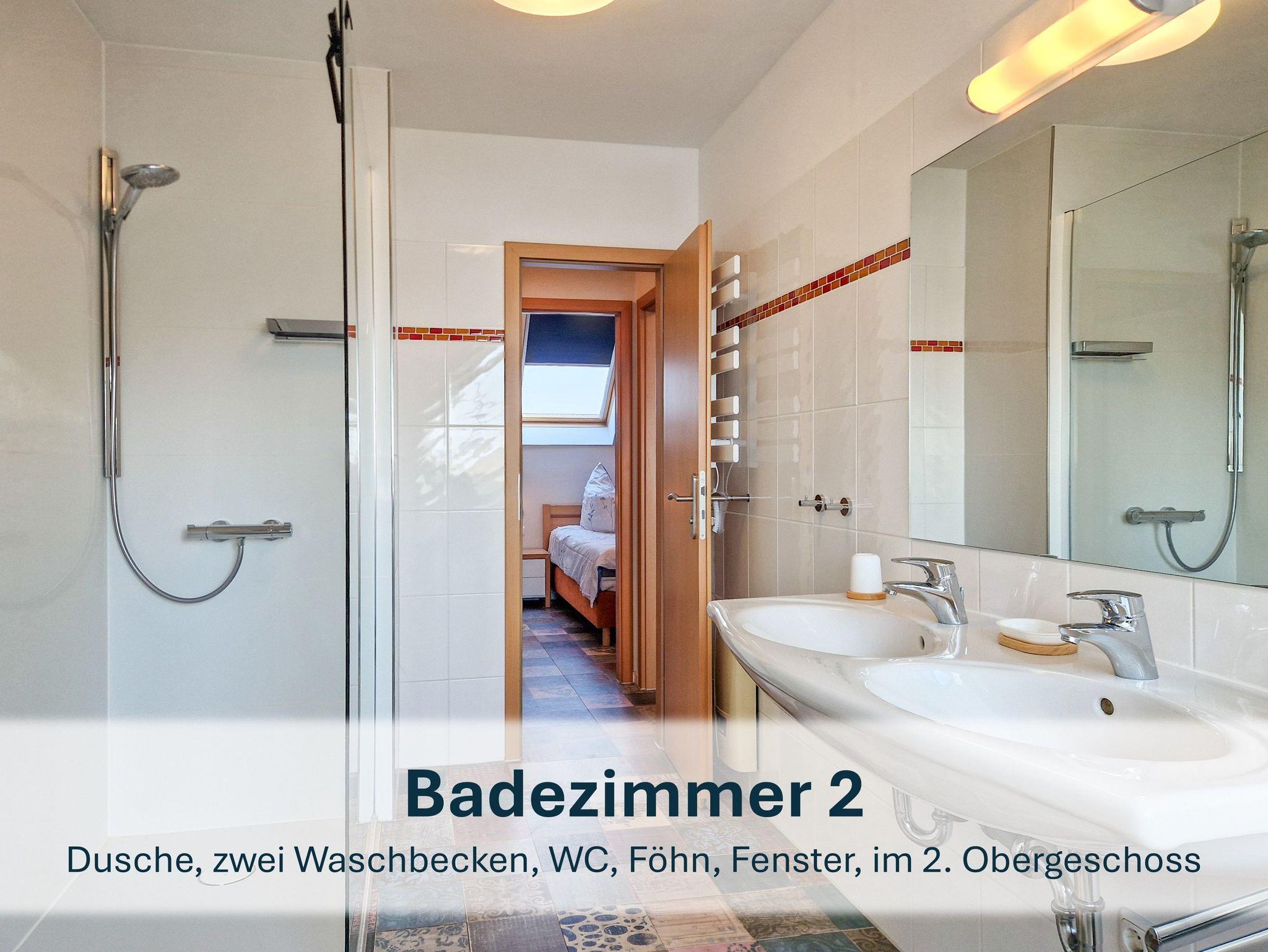 In der 2. Etage, mit charmanten Dachschrägen, finden Sie zwei wunderschöne Doppelzimmer, beide mit Sat-TV, sowie ein weiteres großes Bad/WC - perfekt für Erholung und Komfort.