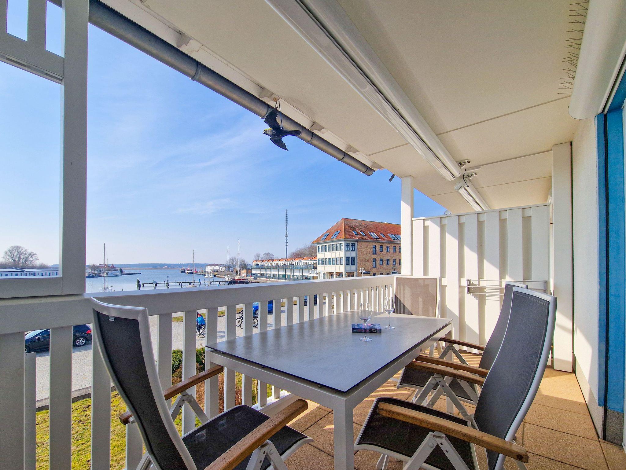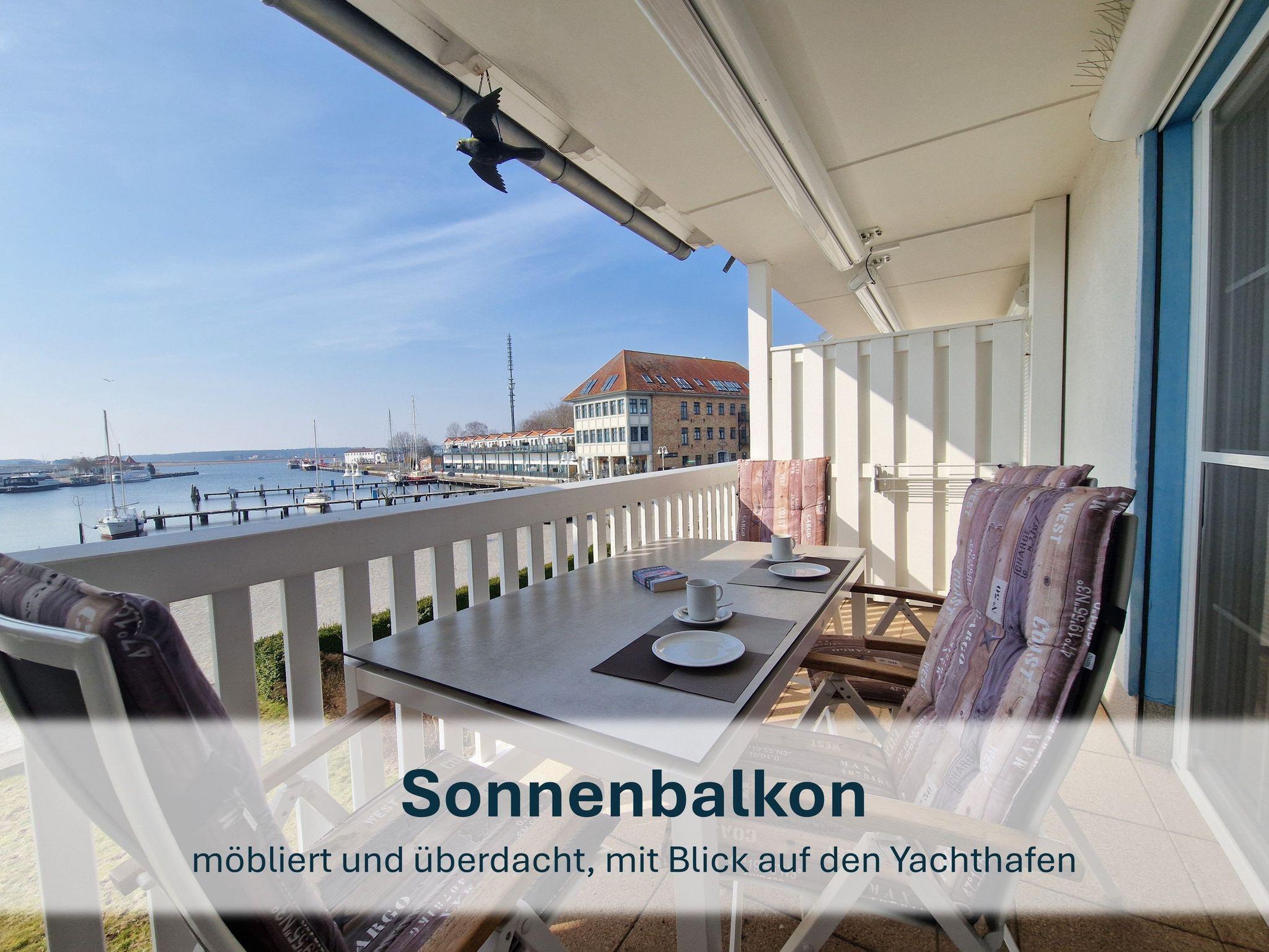 Die Wohnung besticht durch ihre hochwertige und geschmackvolle Einrichtung sowie eine Zentralheizung, die für Wohlfühltemperaturen sorgt. Der überdachte Balkon mit bequemen Sitzmöbeln ist der ideale Ort, um den Blick auf den Hafen zu genießen und den Tag ausklingen zu lassen.