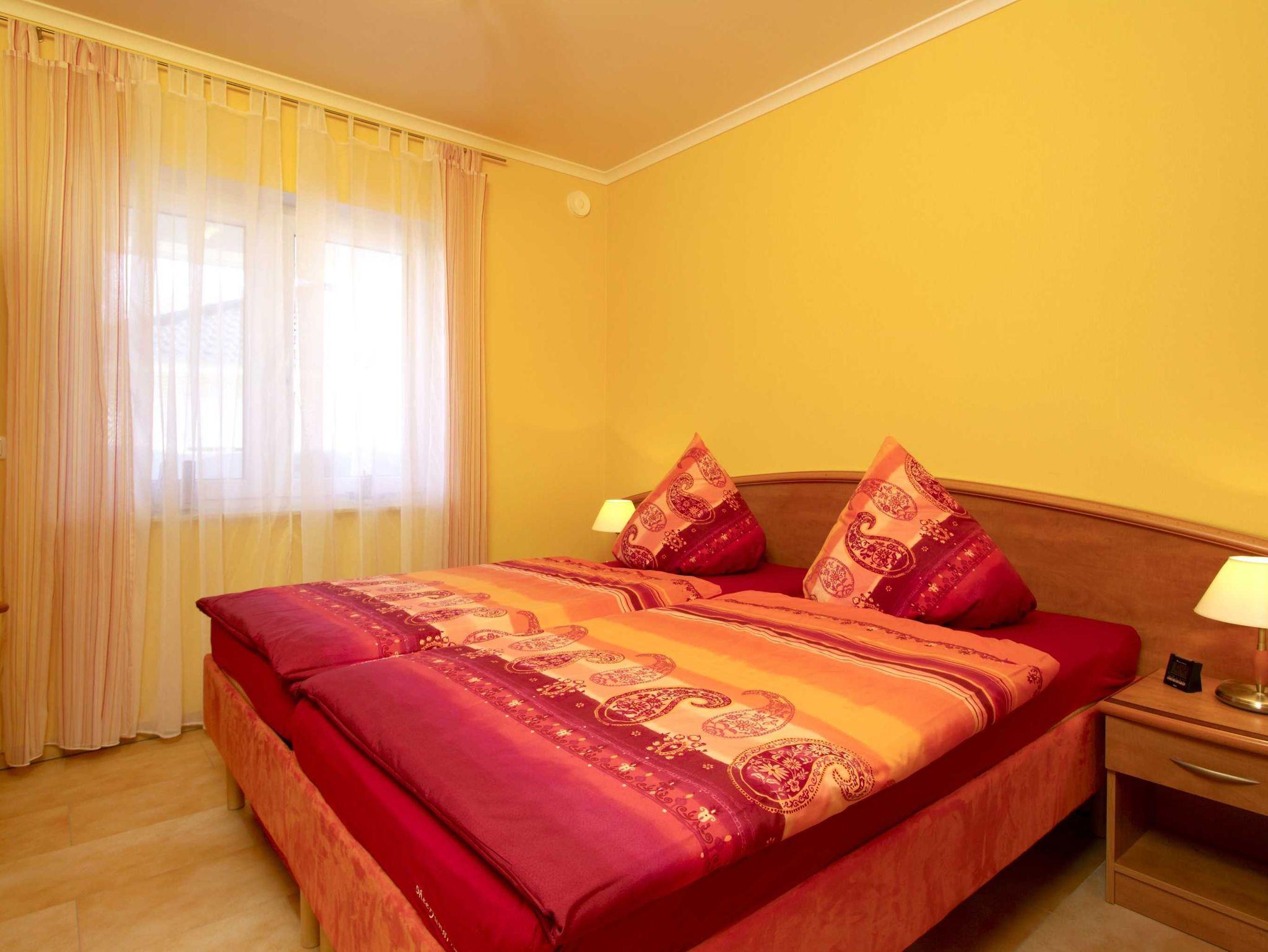 Die drei Schlafräume sind mit Doppelbetten (1 x 1,60 m x 2,00 m und 2 x 1,80 m x 2,00m) und TV mit ca. 60cm Bilddiagonale versehen.