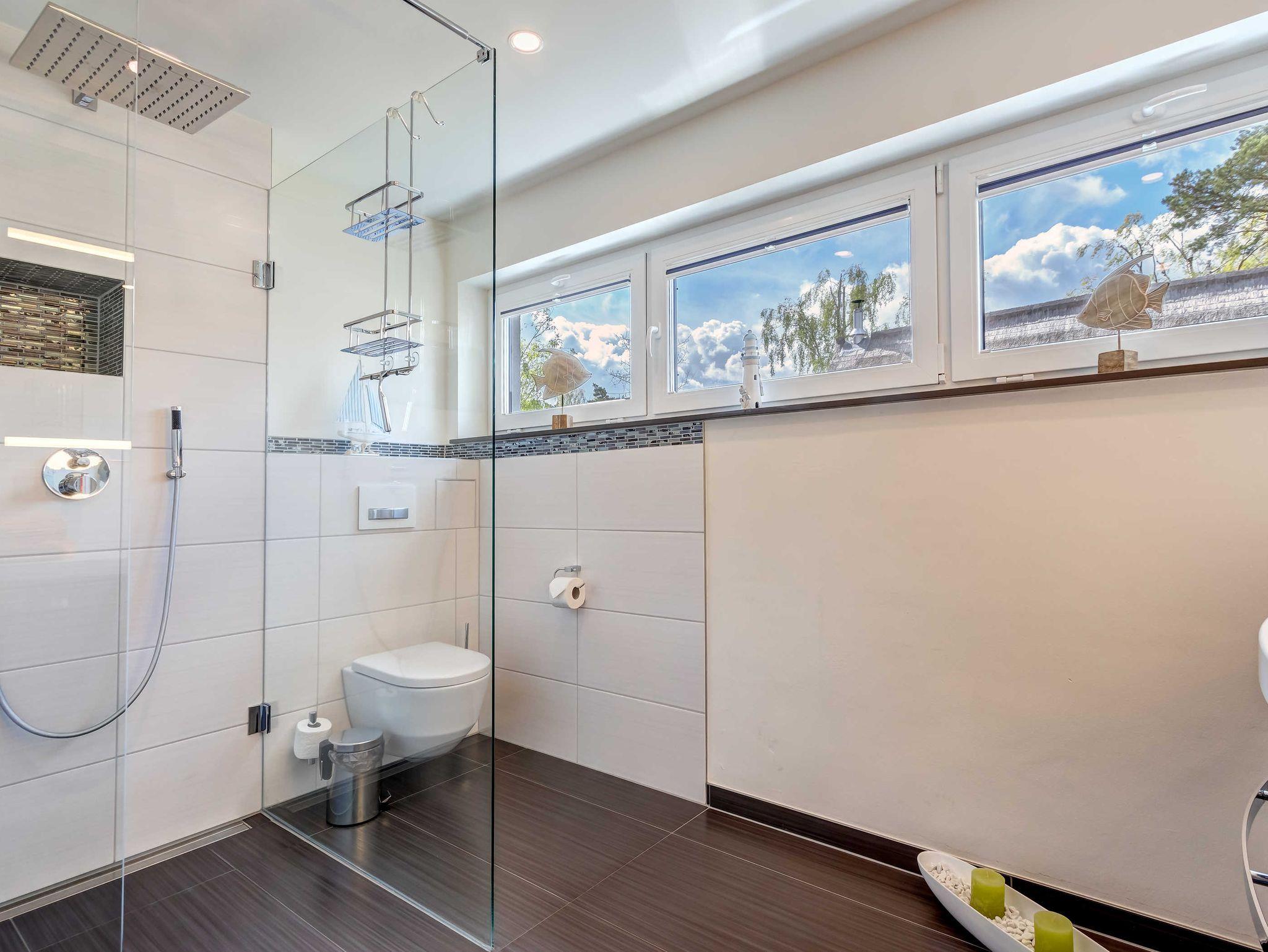 Im Erdgeschoss dieses traumhaften Ferienhauses erwartet Sie ein großzügiges Wohnzimmer mit offener, voll ausgestatteter Küche - der perfekte Ort für gemeinsame Stunden mit Familie und Freunden. Hier können Sie nicht nur kochen, sondern auch gemütlich zusammenkommen und die Zeit genießen. Ebenso finden Sie im Erdgeschoss ein luxuriöses Badezimmer mit einer Whirlwanne und einer Regendusche, die für pure Entspannung sorgen. Ein weiteres Highlight ist eines der drei stilvollen Schlafzimmer mit einem bequemen Doppelbett - der ideale Rückzugsort nach einem erlebnisreichen Tag.