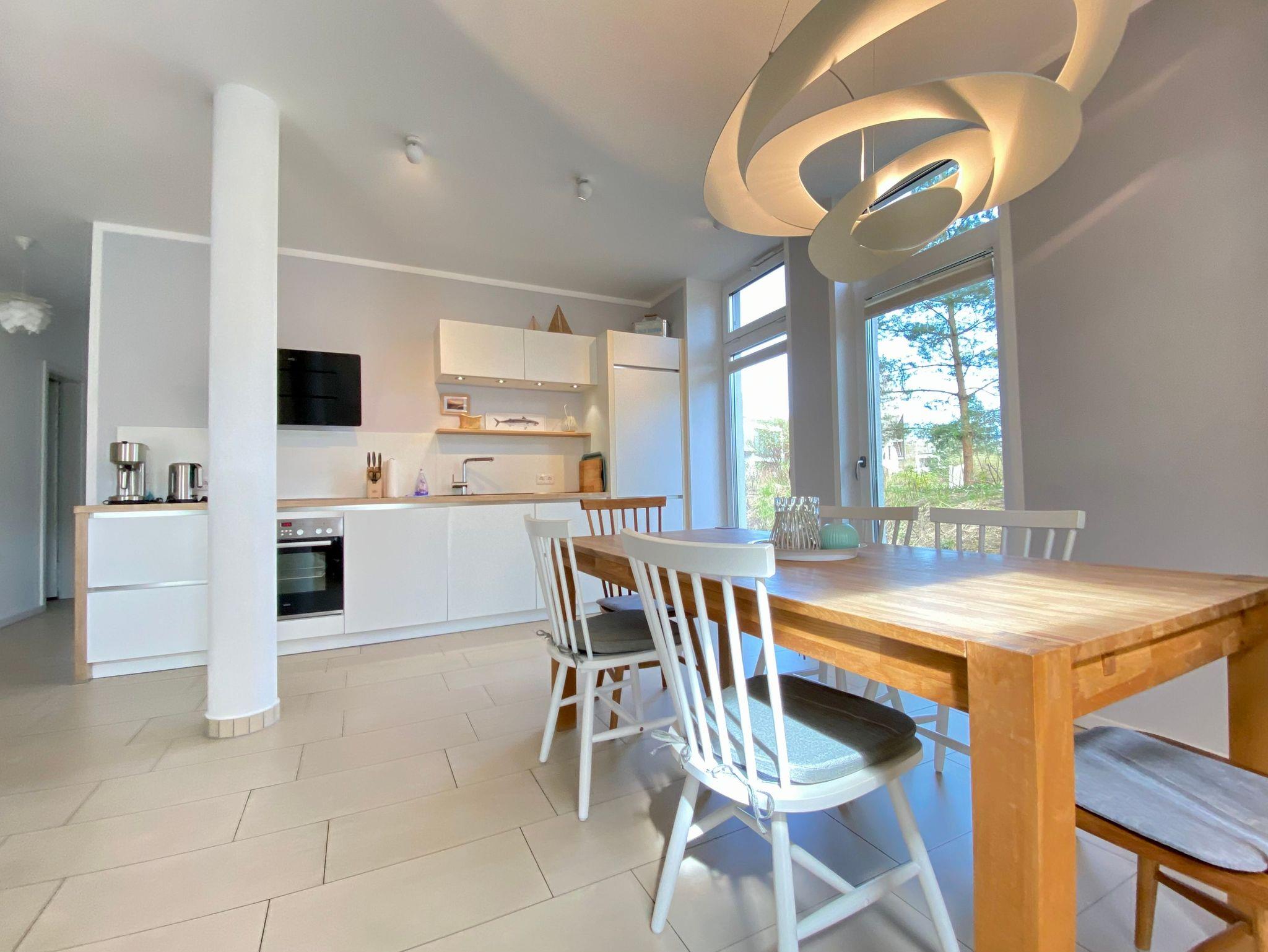 Die tolle und moderne 3 Raumwohnung Koje 2 mit ca. 80m² hat einen treppenlosen Zugang und ist für Senioren und Familien mit Kindern gleichermaßen geeignet. Zur Ferienwohnung gehört ein großer Wohnbereich mit integrierter Küchenzeile und ein Zugang zur schönen Terrasse und 400m² Gartengrundstück . Die Wohnung hat zwei Schlafzimmer mit Doppelbetten und ein Badezimmer mit Dusche und Wanne. Es gibt einen eigenen Abstellraum mit Waschmaschine. Der Stellplatz befindet sich gleich vor der Tür. Internet steht Gästen kostenfrei zu Verfügung.