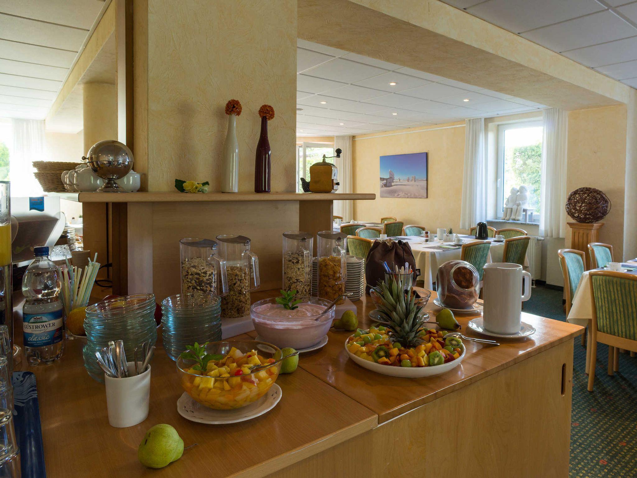In der Frühstückspension Maiglöckchen wird täglich (außer in der Wintersaison) von 8:00 bis 10:00 Uhr ein Frühstücksbuffet angeboten. Bei geeigneter Witterung ist das Frühstück im Gästegarten möglich. Eine vorherige Anmeldung ist erforderlich, sofern das Frühstück nicht bereits Bestandteil der Buchung ist. Kurzfristige Anmeldungen sind bis zum Vortag im Büro möglich.