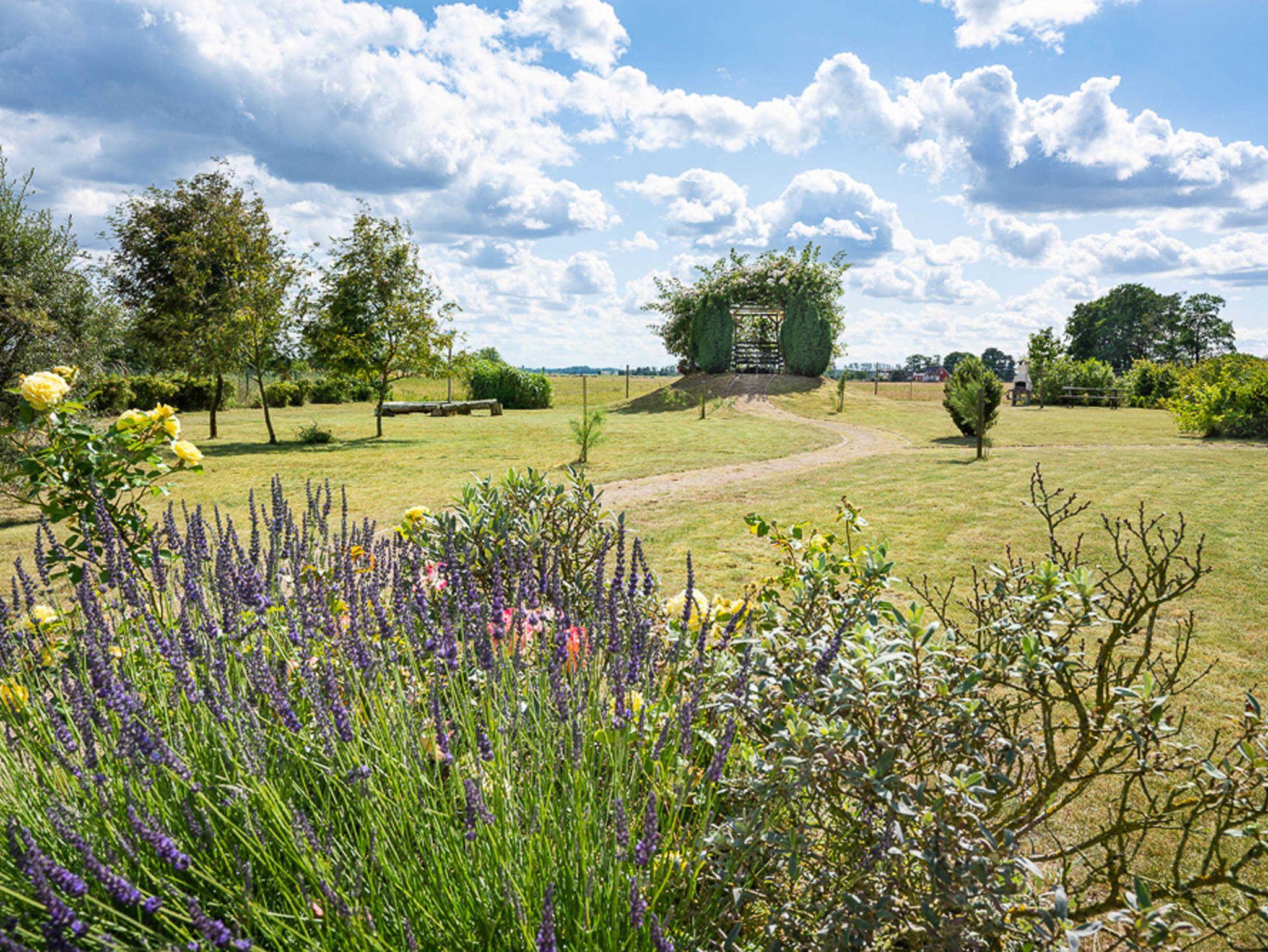 Der große Garten bietet Auslauf zum Spielen, Sitzplätze in Pavillons, Grillplätze und eine Feuerstelle für schöne Abende nach einem Tag am weißen, breiten und langen Strand.