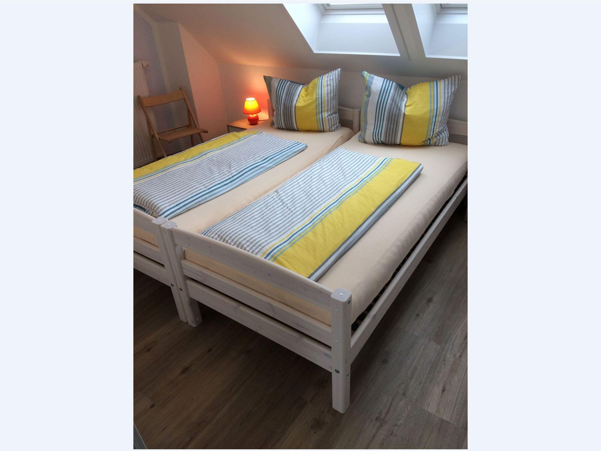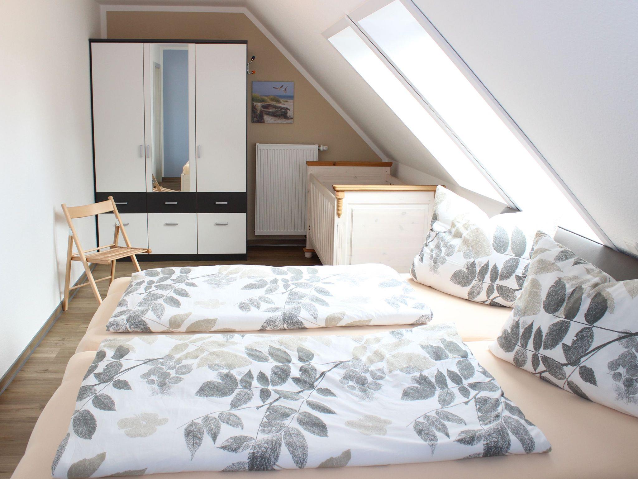 Das Badezimmer mit Dusche, WC und Fußbodenheizung befindet sich ebenfalls im Erdgeschoss. Die beiden Schlafzimmer finden Sie im Obergeschoss der jeweiligen Wohneinheit. In der Fewo Anna gibt es im Elternschlafzimmer zusätzlich ein festes Kinderbett.