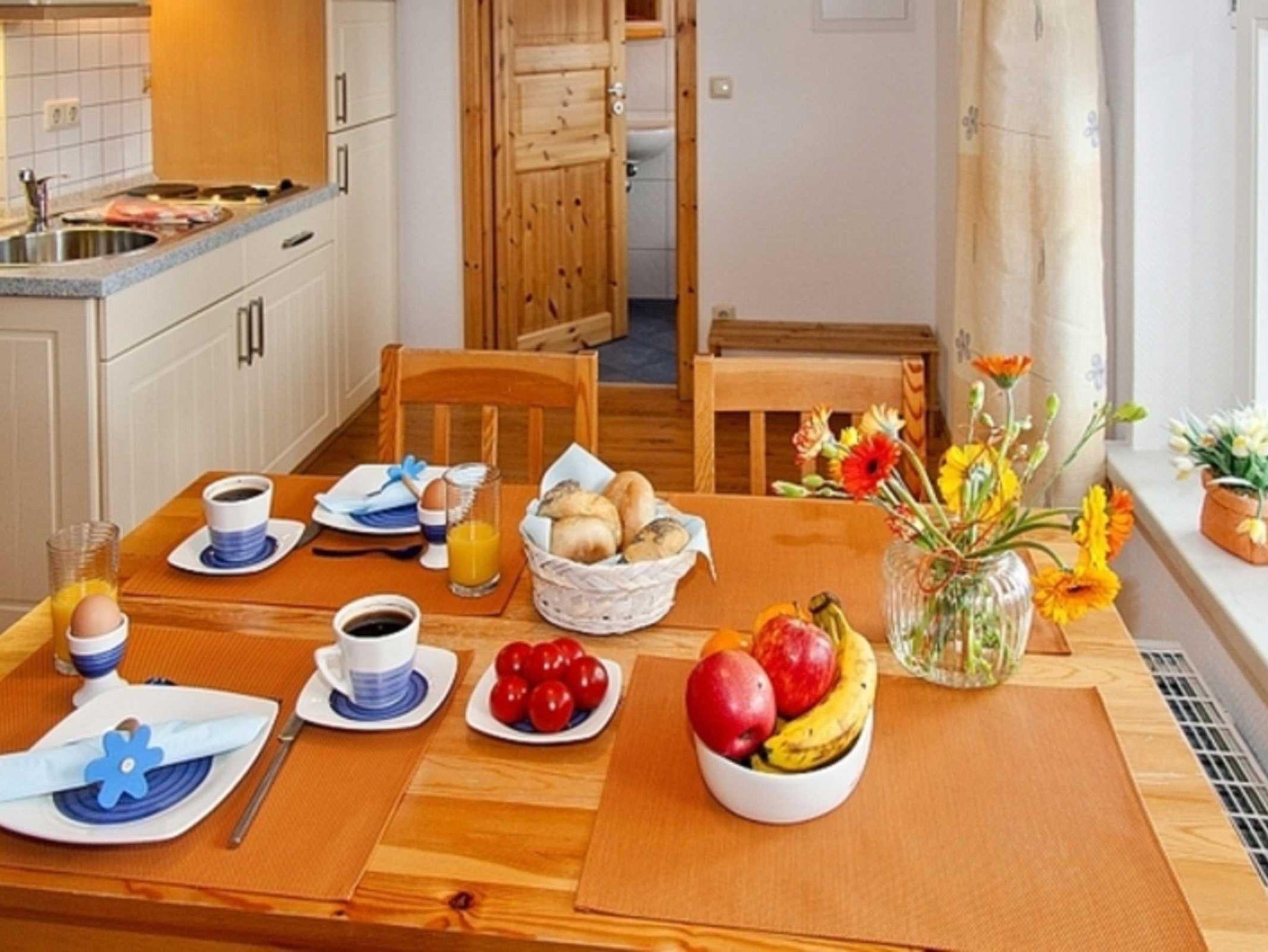 Das Wohnzimmer ist mit Doppelbettcouch, Radio/TV,Couchtisch,Rattansessel u. Essecke ausgestattet,das Schlafzimmer mit Doppelbett. Zur Einbauküche gehören u.a.2 Platten-Herd, Mikrowelle mit Grill, Kühlschrank mit Gefrierfach, Geschirr. Zum Bad gehört Dusche,WC u.Waschtisch, Fön. Zur Fewo gehören Terrasse,Holzkohlegrill, kostenloser Parkplatz.