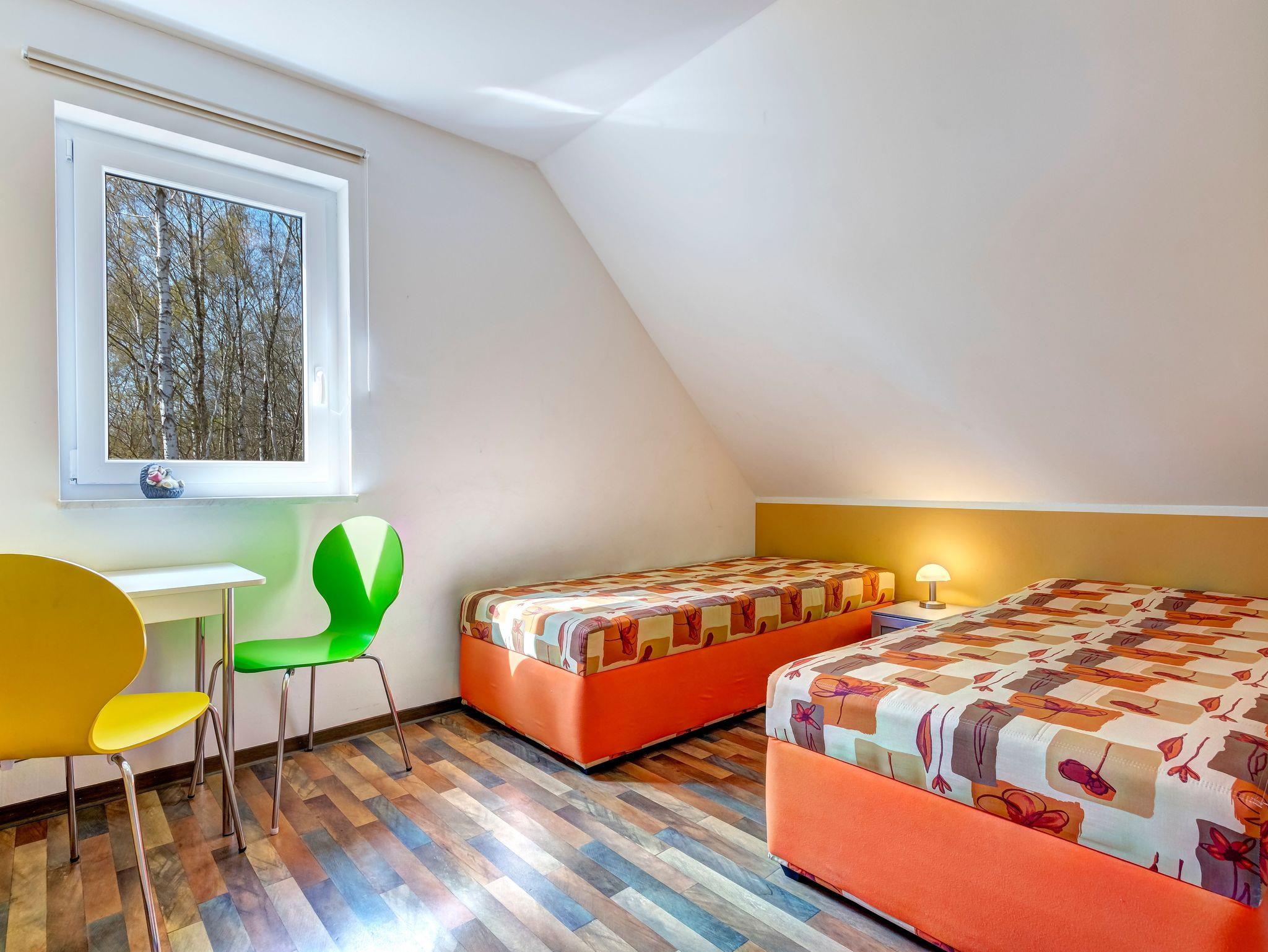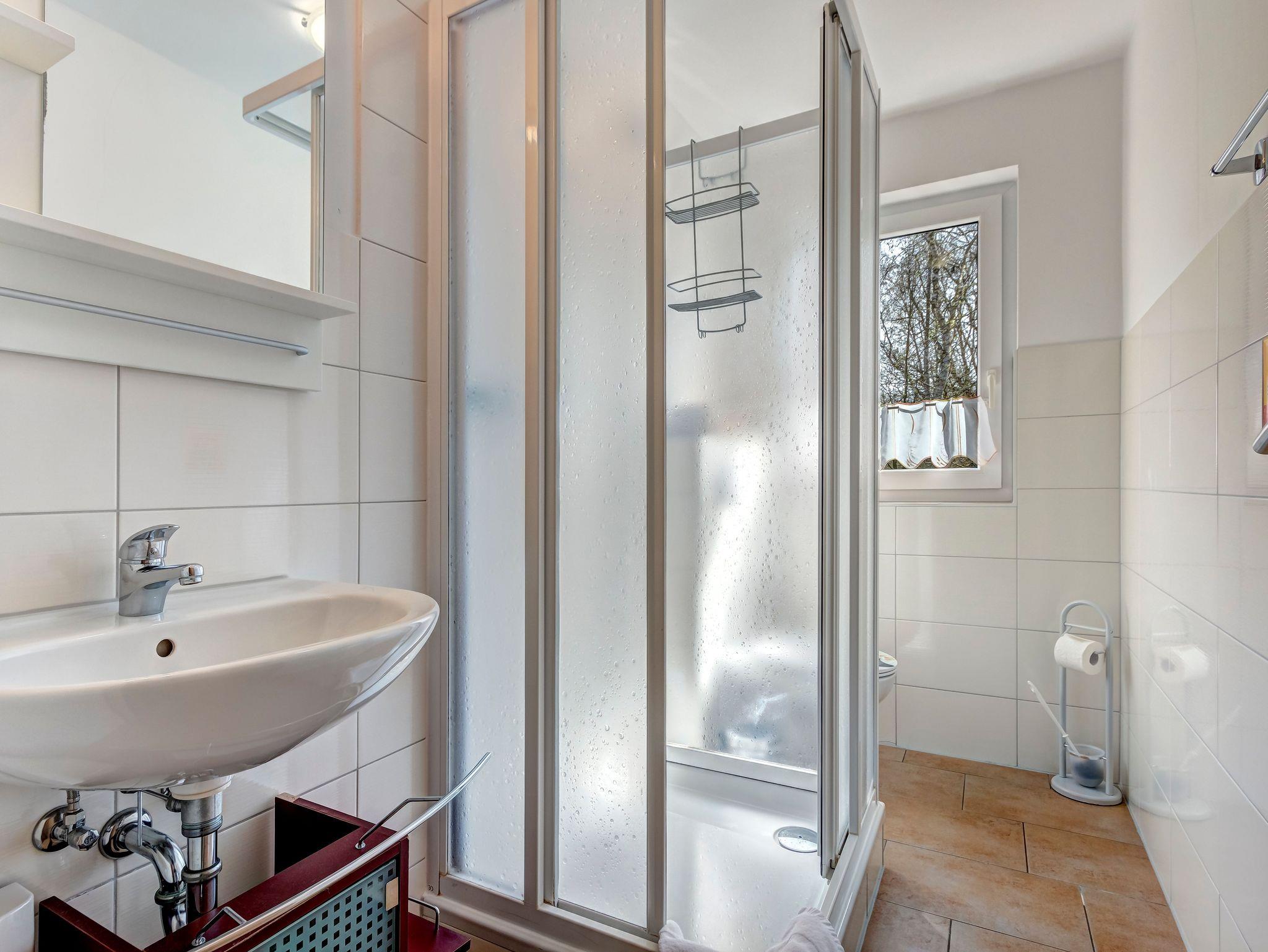 Weiterhin sind im EG das Gäste-WC und ein Abstellraum vorhanden. Im OG befinden sich die beiden Schlafzimmer (1x Doppelbett, 1x 2 Einzelbetten), sowie das Badezimmer mit Dusche und WC. Für unsere kleinen Gäste stehen ein Reisebett und Hochstuhl zur Verfügung.
