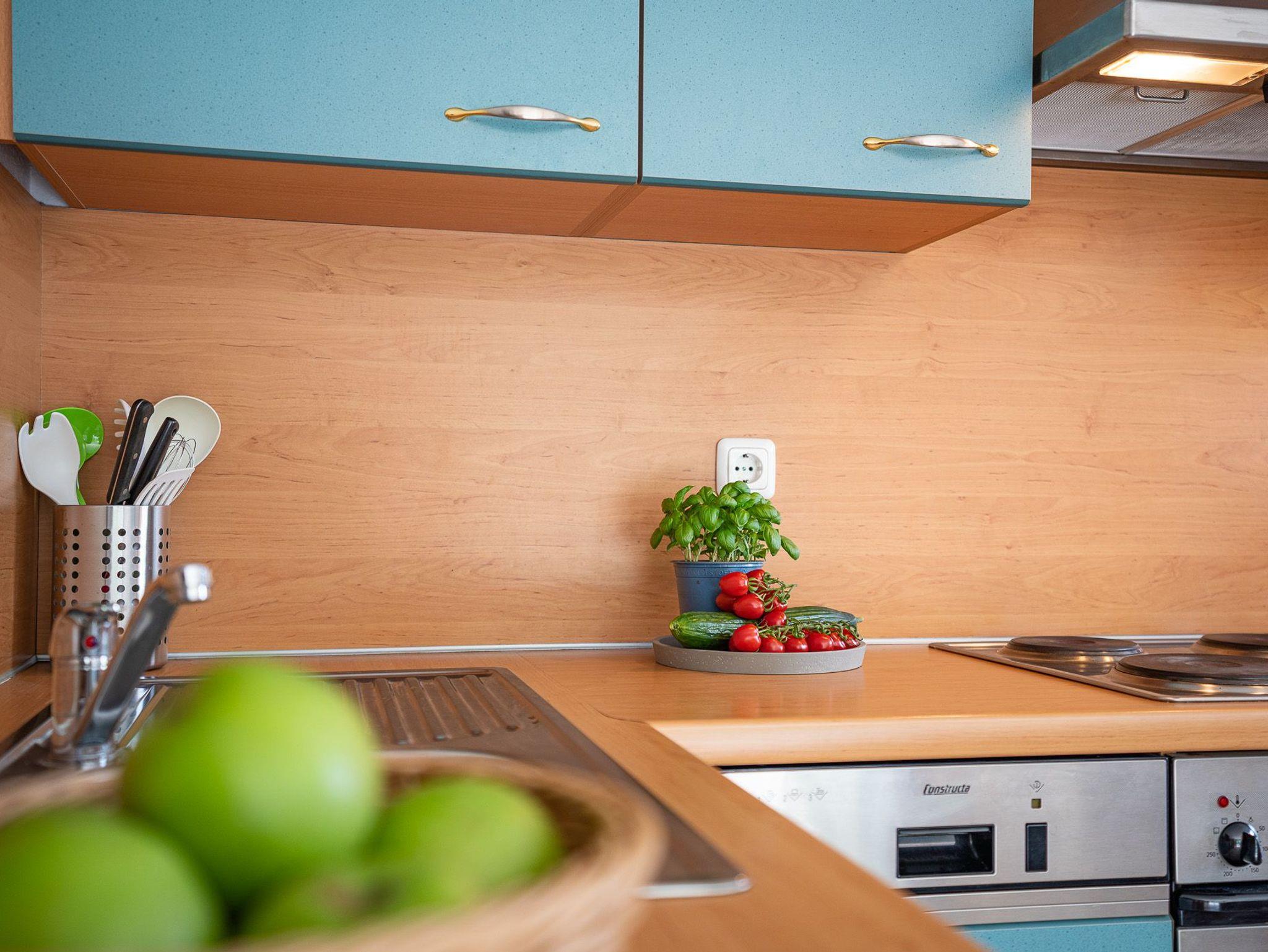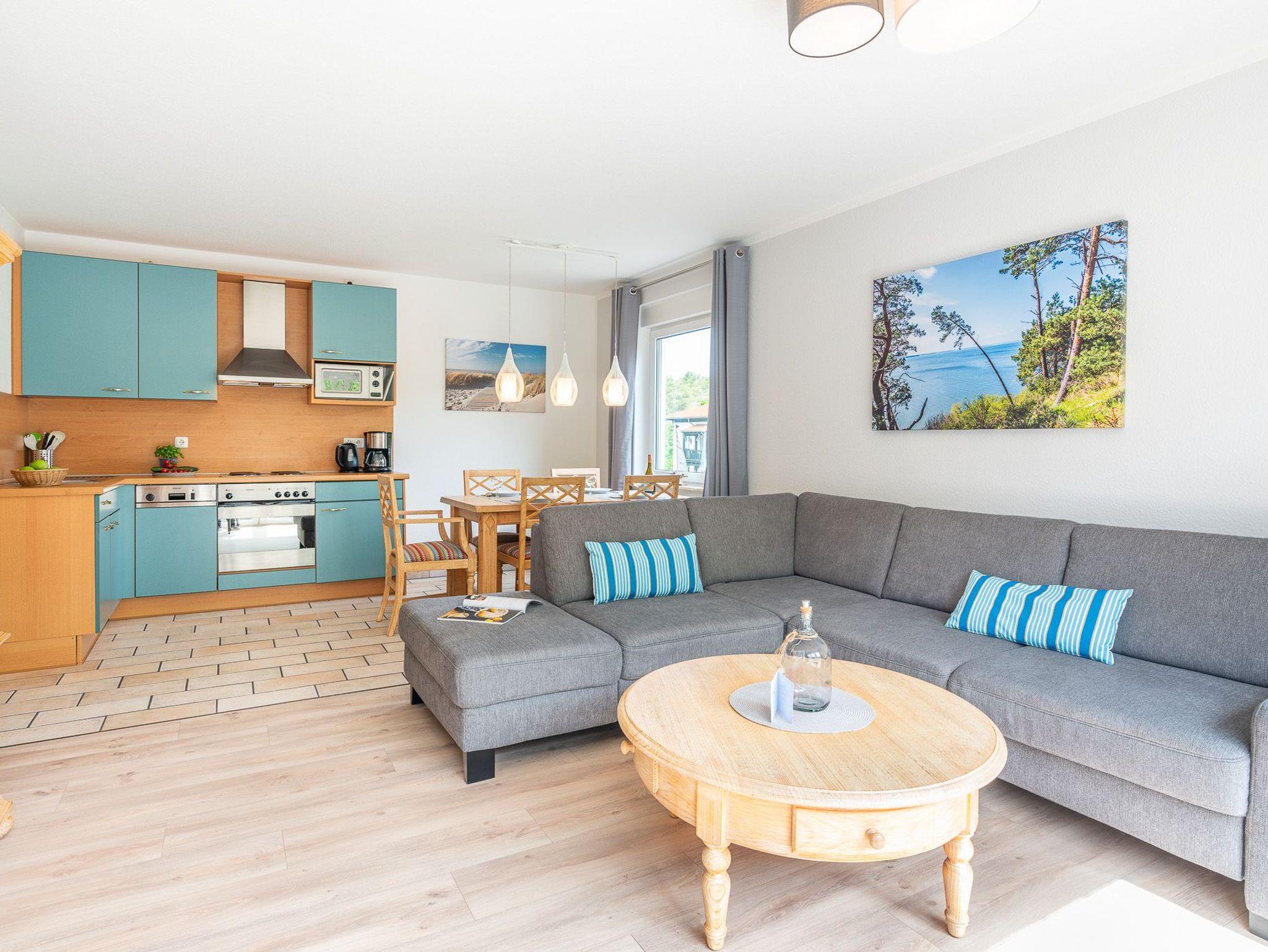Die Ferienwohnungen vom Typ 2 sind gemütlich eingerichtet. Sie verfügen über 69 m² und sind für bis zu 6 Personen ausgelegt (4 Pers. + 2 Aufbettungen). Sie besitzen zwei Schlafzimmer, ein Wohnbereich mit einer offenen Küche und ein Badezimmer.