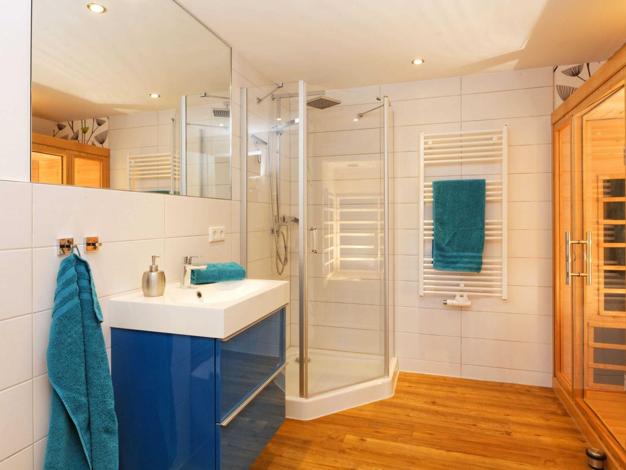 • separates Bad mit Infrarot-Wärmekabine, Eck-Dusche, Waschbecken, WC